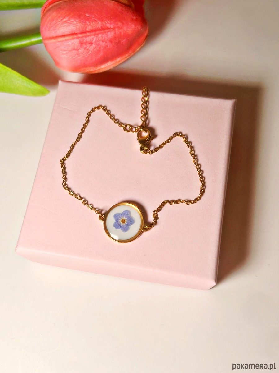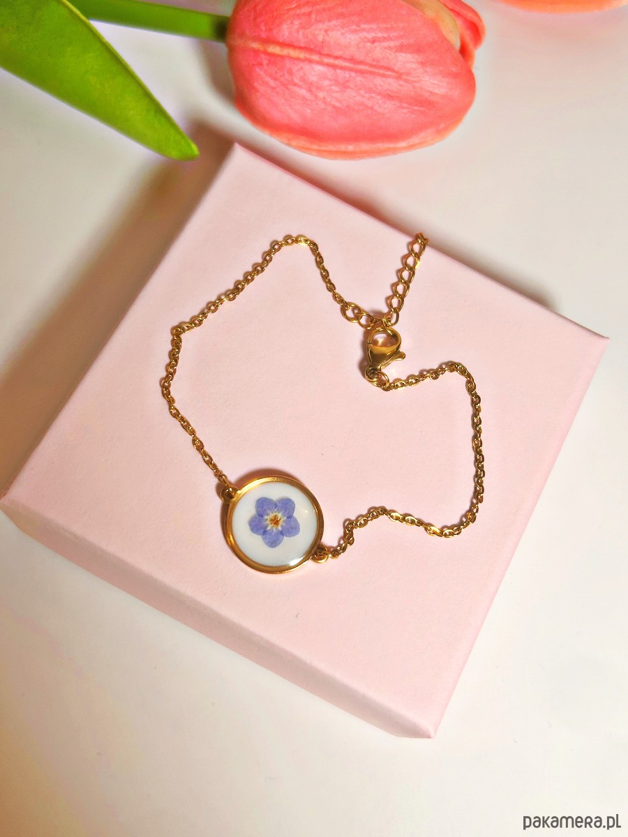 Bransoletka z niezapominajką biżuteria z kwiatami