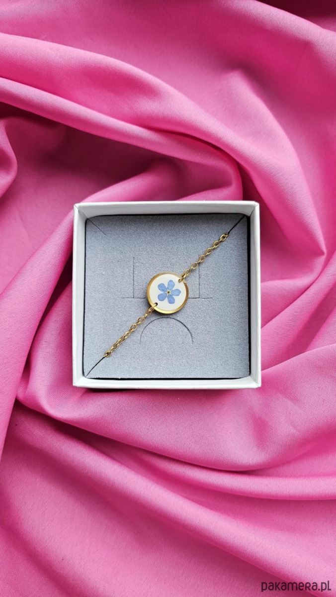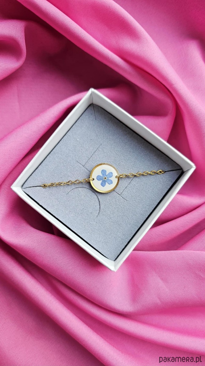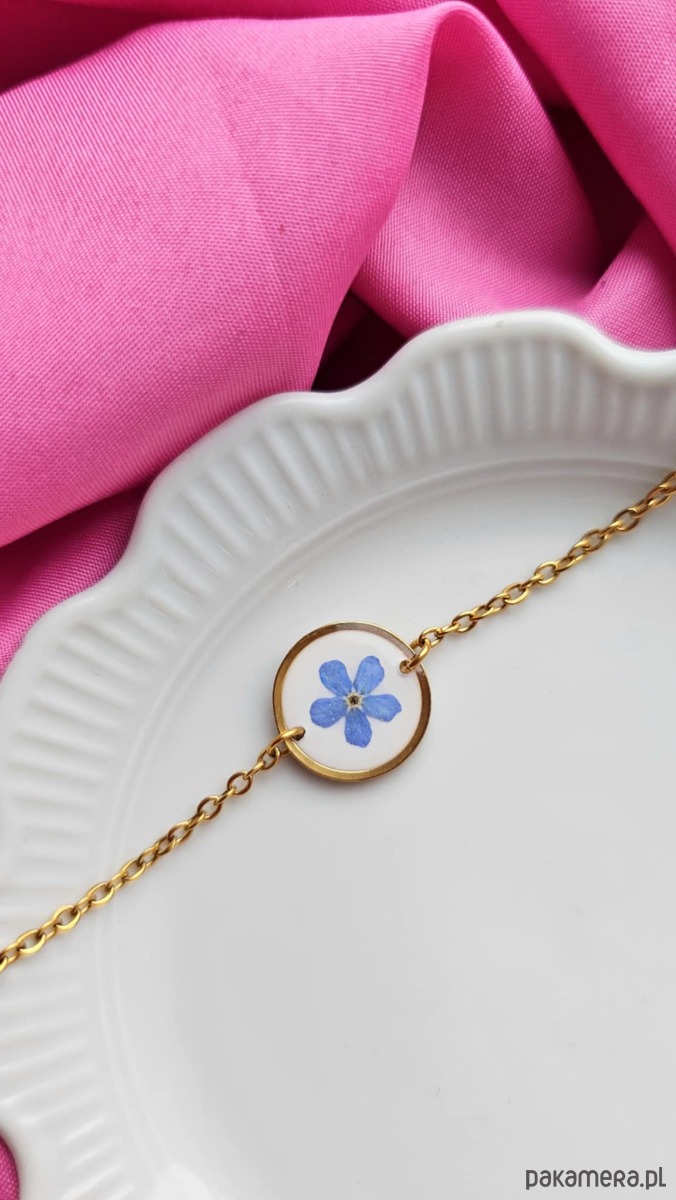 Bransoletka z niezapominajką to unikatowa, ręcznie wykonana biżuteria z serii Wdzięczność.