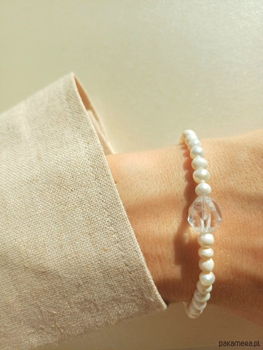 Elementy : perła słodkowodna : 4 mm, kryształ górski : 1 cm , zapięcie: stal szlachetna