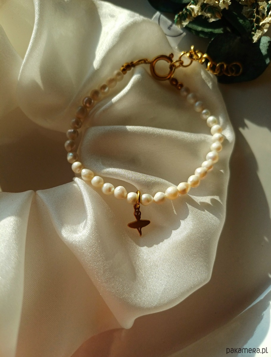 Bardzo delikatna, kobieca bransoletka wykonana z pereł naturalnych słodkowodnych wraz z zawieszką - baletnicą .