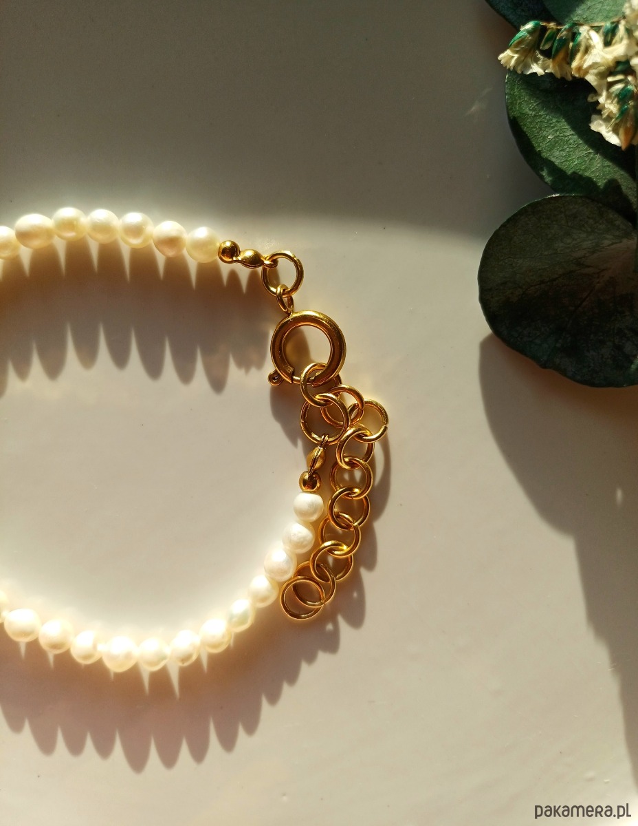 Bransoletka : perły naturalne słodkowodne : 4 mm, wygodne zapięcie typu federing: stal szlachetna