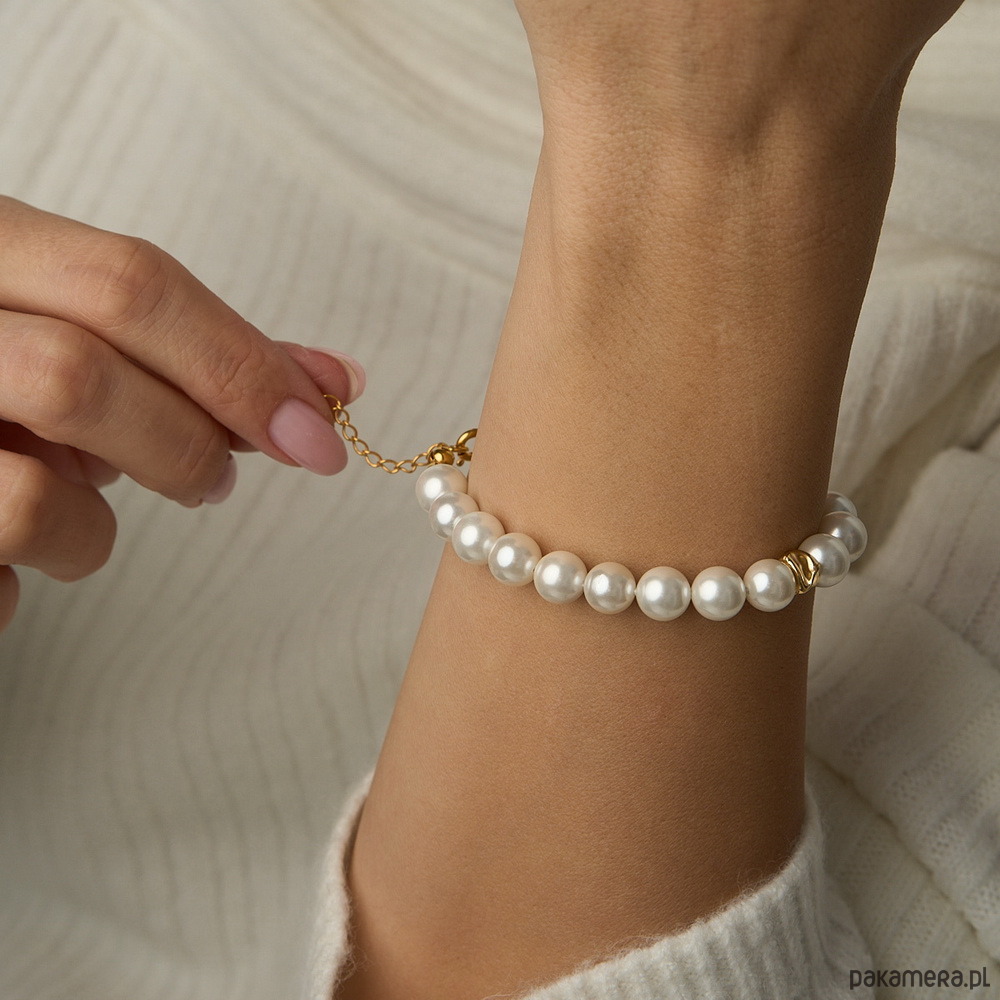 Bransoletka z pereł Seashell i srebra 925 pozłacanego