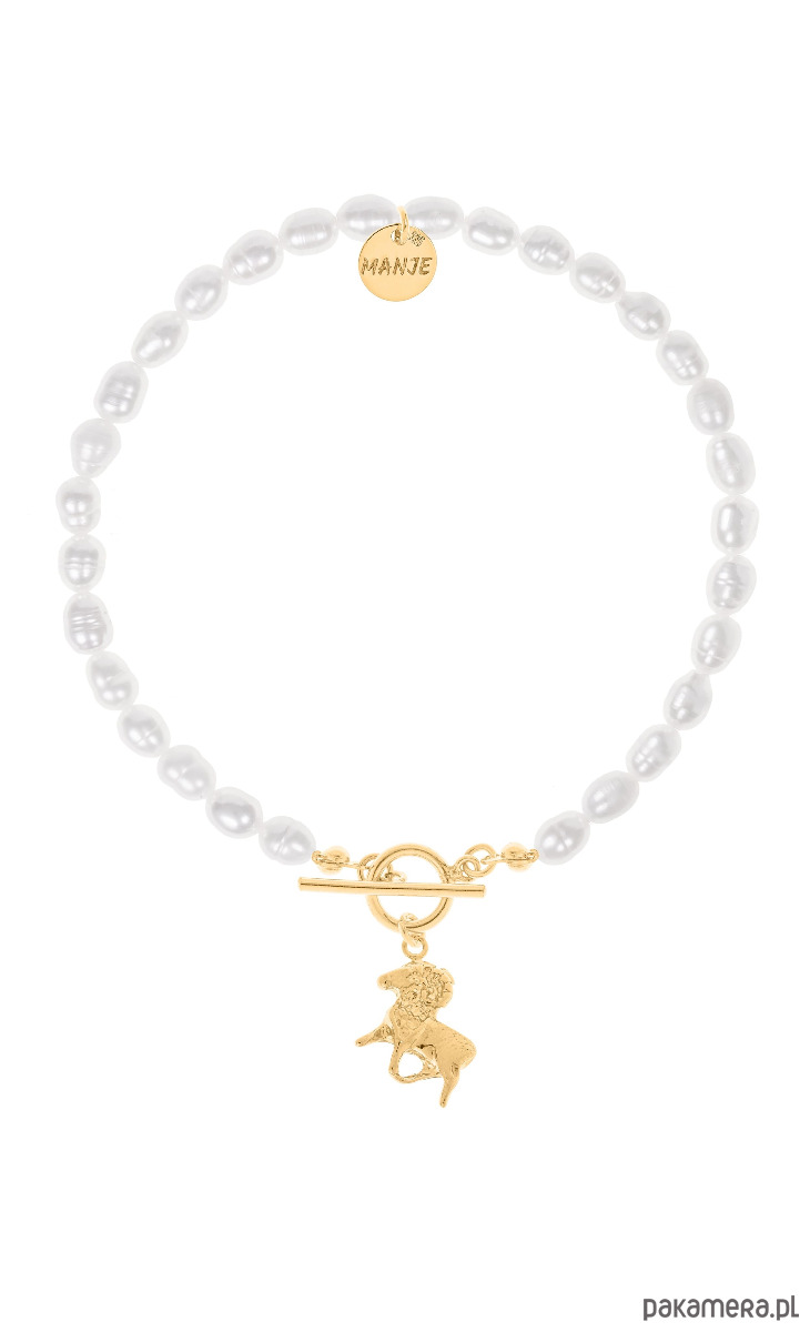 Bransoletka z pereł z pozłacanym znakiem zodiaku Baran