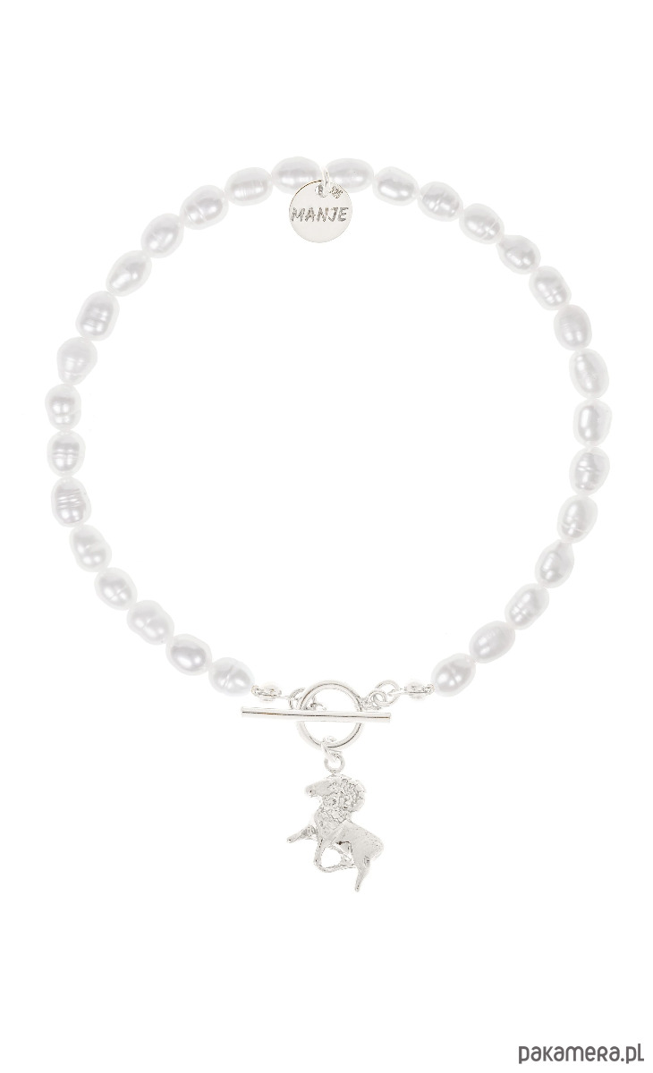Bransoletka z naturalnych pereł ze srebrnym znakiem zodiaku Baran. Bransoletka wykonana jest z białych naturalnych pereł hodowlanych. Zawieszka, zapięcie oraz logo wykonane ze srebra próby 925.