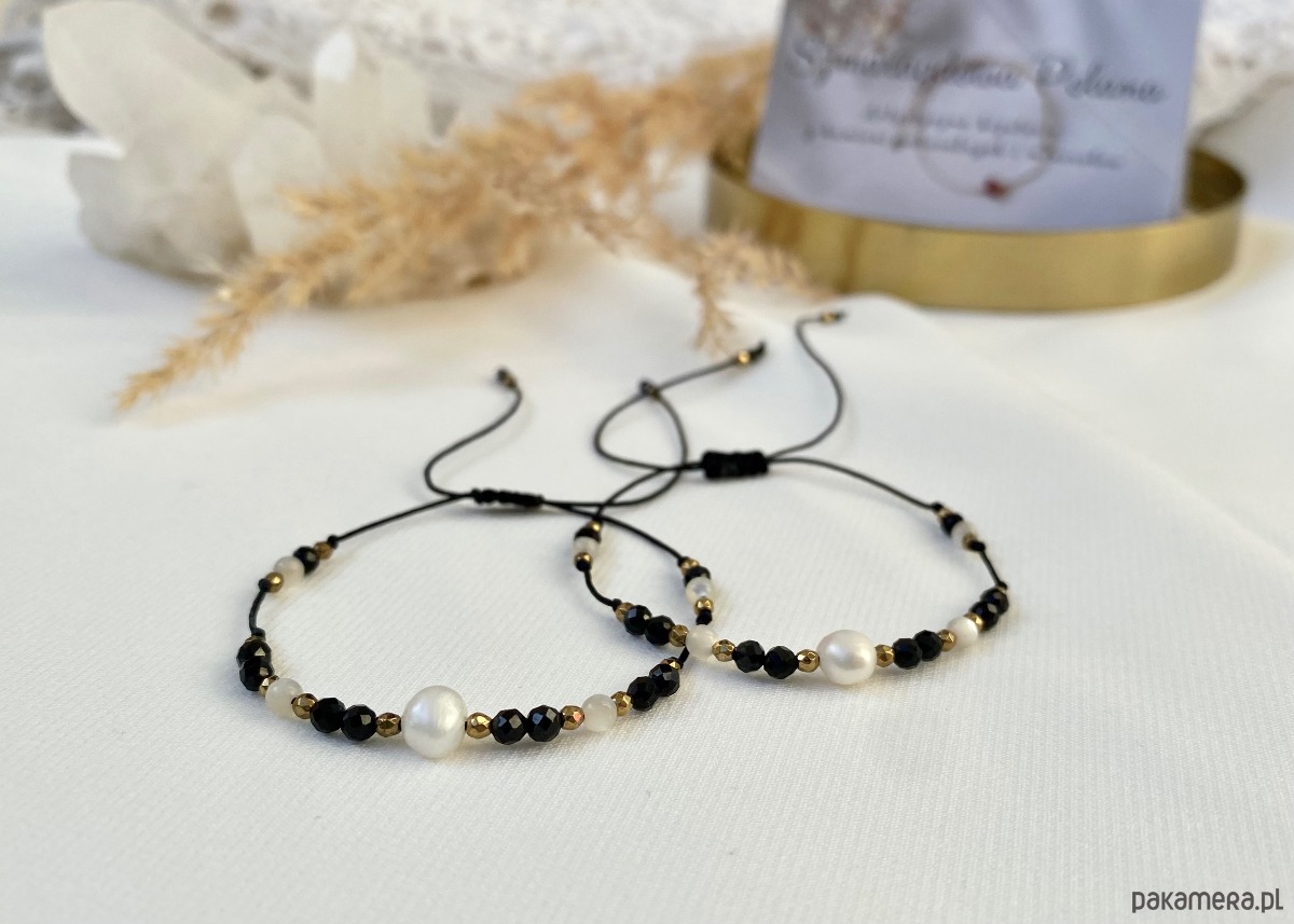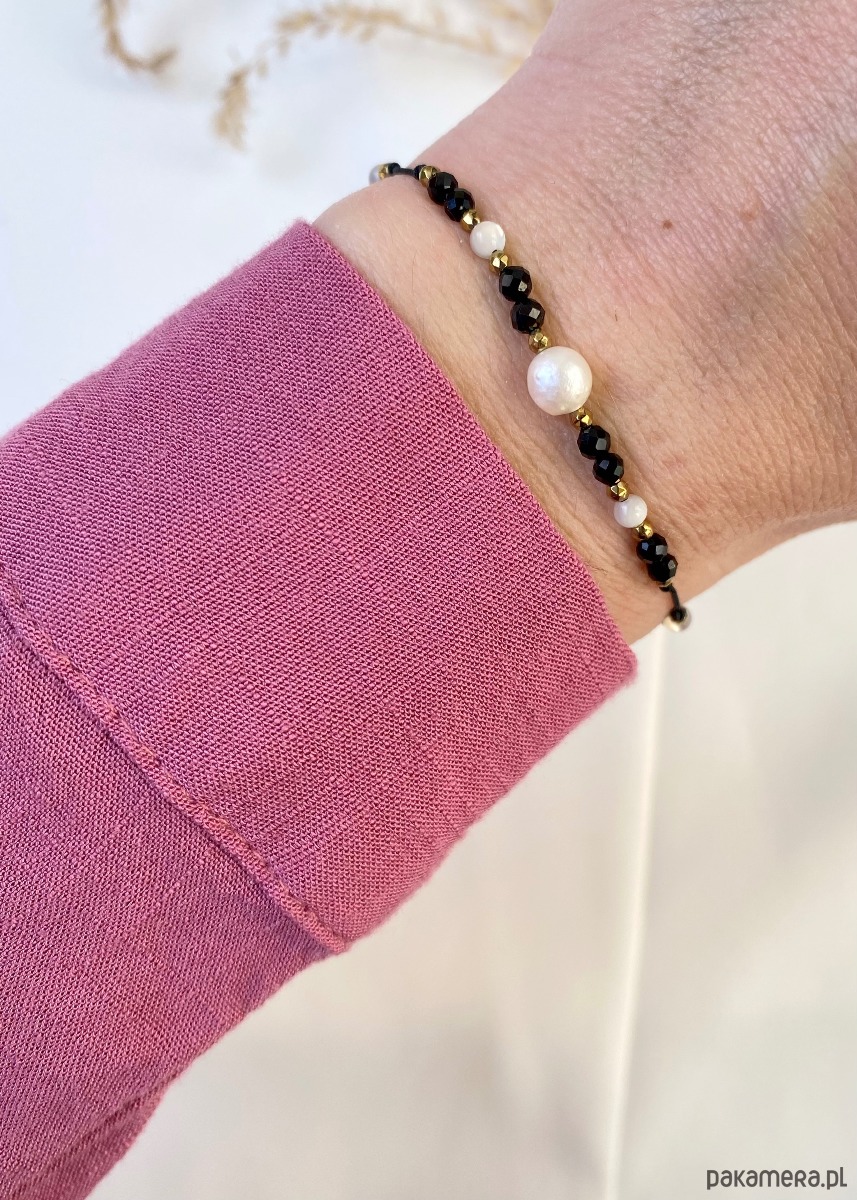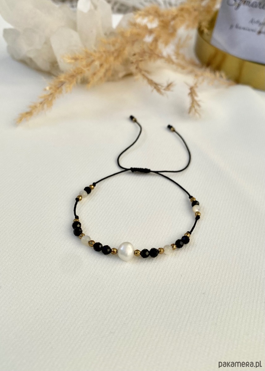 Ta urocza bransoletka została ręcznie wykonana z najwyższej jakości materiałów, aby zapewnić nie tylko piękny wygląd, ale także trwałość. Połączenie delikatnej perły i czarnego turmalinu tworzy harmonijną kompozycję, która emanuje elegancją i wyrafinowanym stylem.