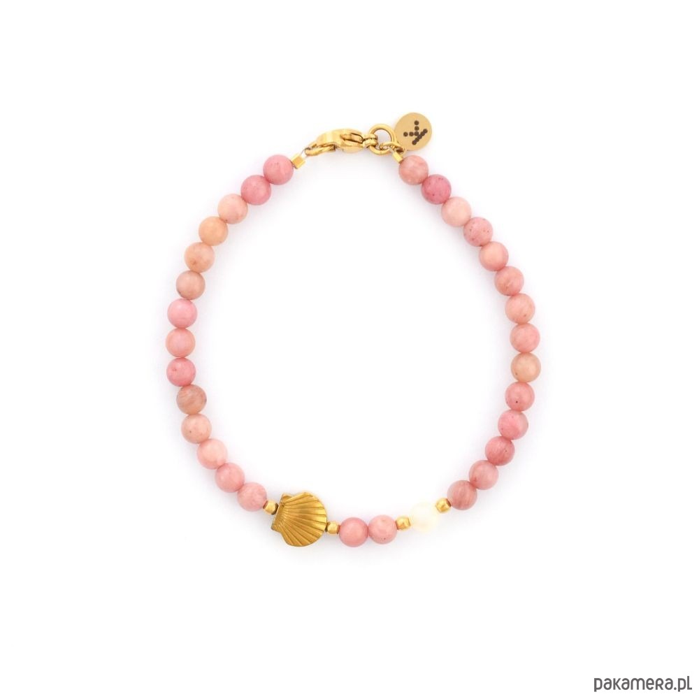Bransoletka z pudrowych Rodonitów z muszelką i Perełką
