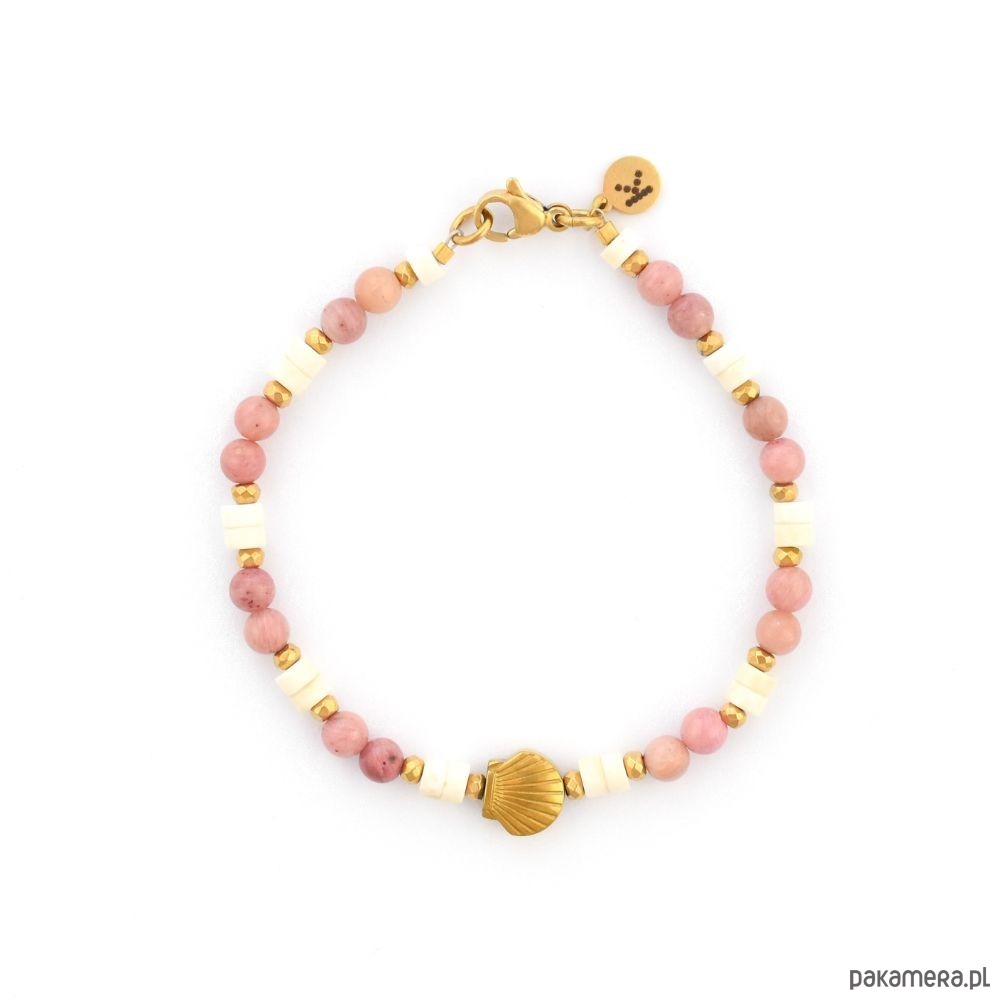 Bransoletka z pudrowych Rodonitów z muszelką