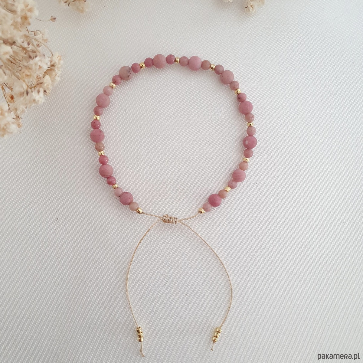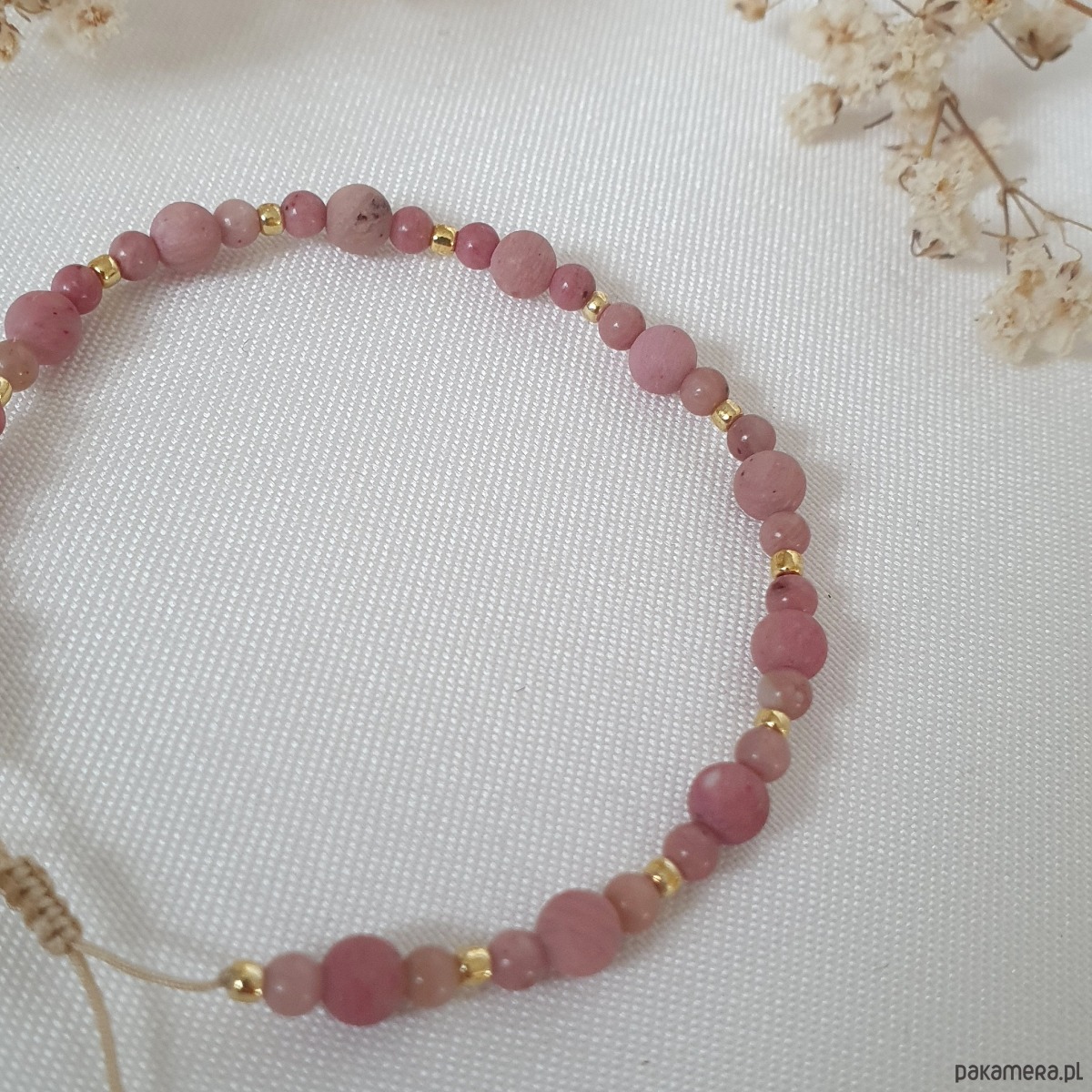 Delikatna i pełna znaczenia bransoletka handmade, wykonana z naturalnego rodonitu na wytrzymałej nici jubilerskiej. Regulowane zapięcie makrama pozwala na dowolne dopasowanie do nadgarstka, dzięki czemu bransoletka jest wygodna i uniwersalna.