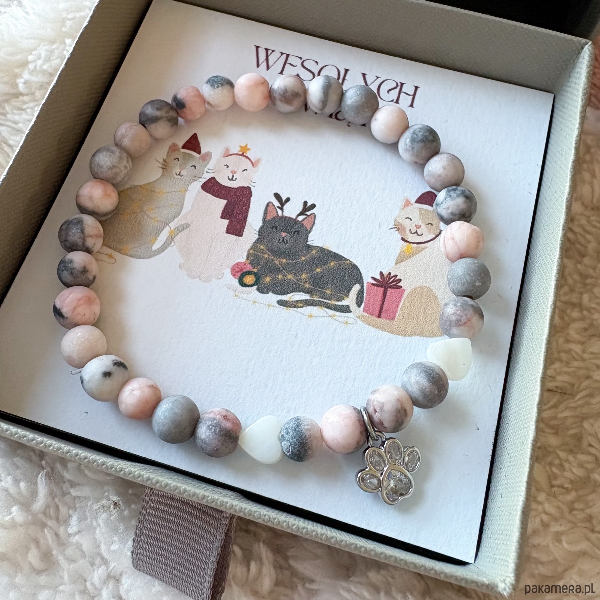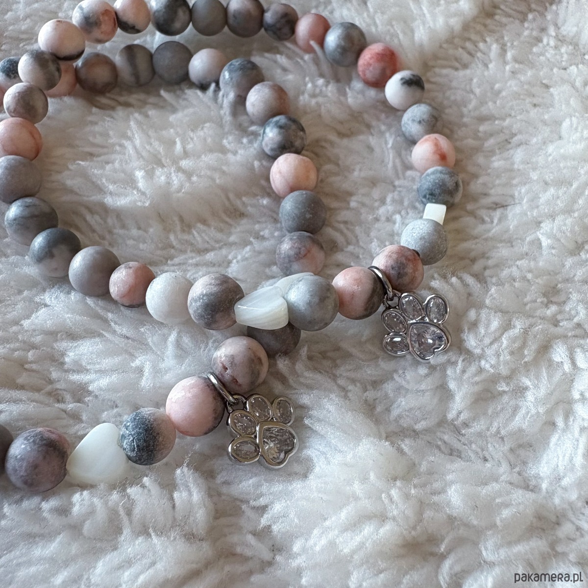 Pastelowa bransoletka z rodonitów z łapką pupila to uroczy sposób, by wyrazić miłość do zwierząt! Delikatne, pastelowe kamienie wprowadzają harmonię i spokój, a subtelna zawieszka w kształcie łapki sprawia, że bransoletka staje się wyjątkowym, osobistym dodatkiem. Idealna dla miłośników zwierząt i pięknej biżuterii – na prezent lub dla siebie. Lekka, wygodna i pełna uroku, będzie codziennie przypominać o wyjątkowej więzi ze zwierzakiem. To nie tylko piękny dodatek do codziennych i eleganckich stylizacji, ale także świetny pomysł na prezent dla miłośnika zwierząt. Podaruj bliskiej osobie symboliczny upominek, który będzie mogła nosić zawsze przy sobie, przypominając o wyjątkowej więzi ze swoim pupilem.