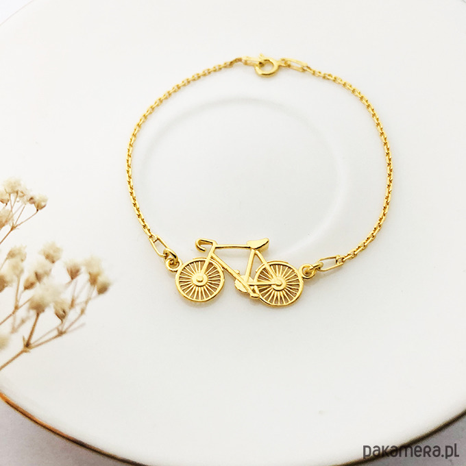 Bransoletka z zawieszką w kształcie roweru. Z obu stron zawieszka jest taka sama, Wykonana ze srebra próby 925.