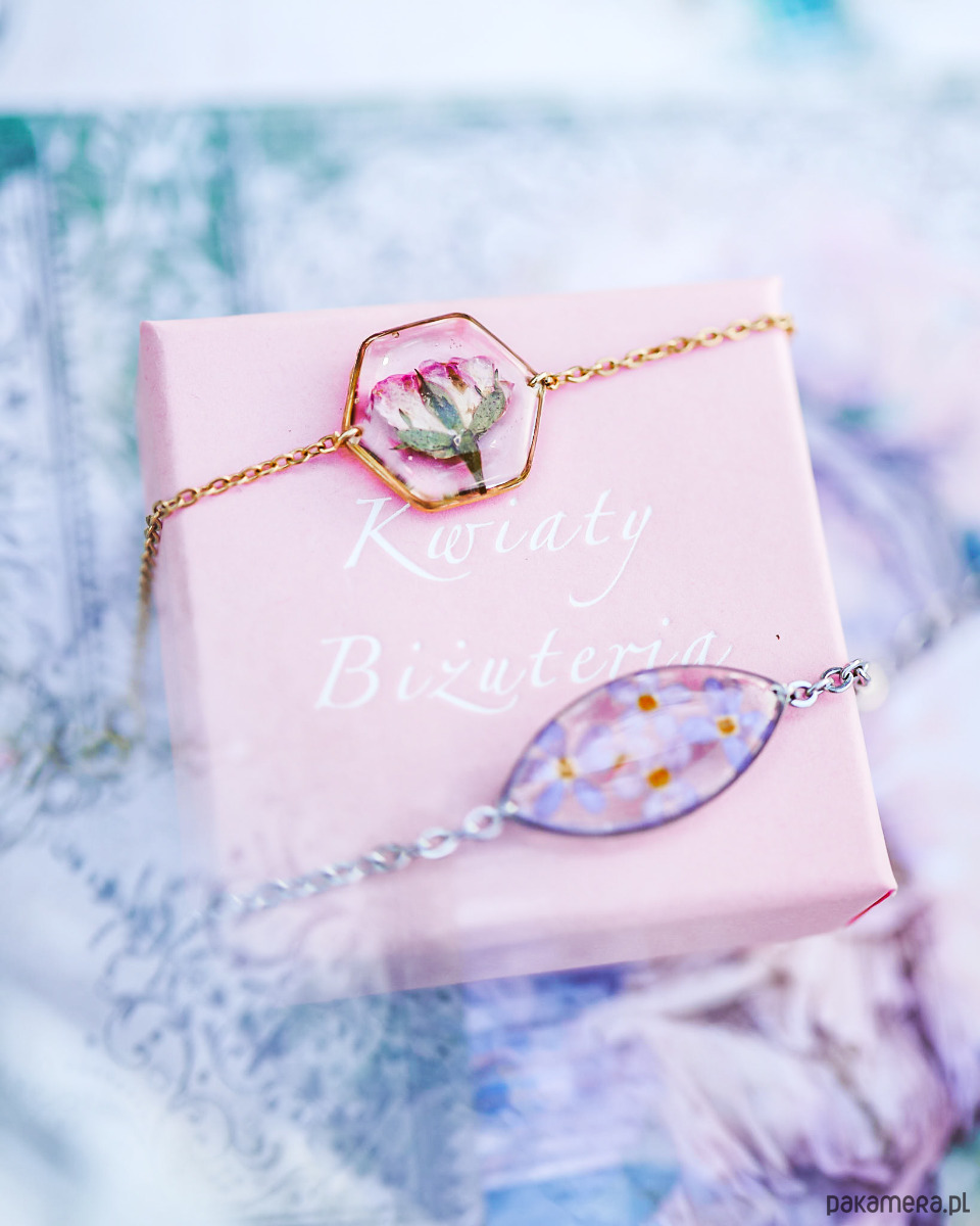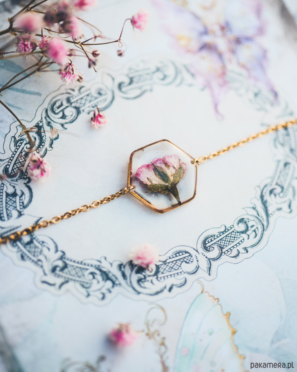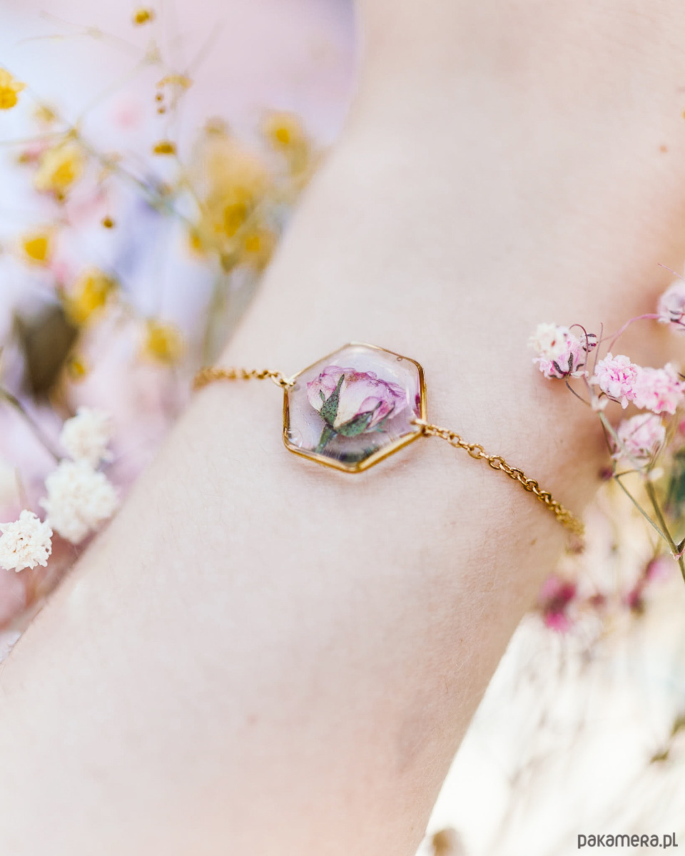 Bransoletka z różą, biżuteria z żywicy kwiatowe marzenia