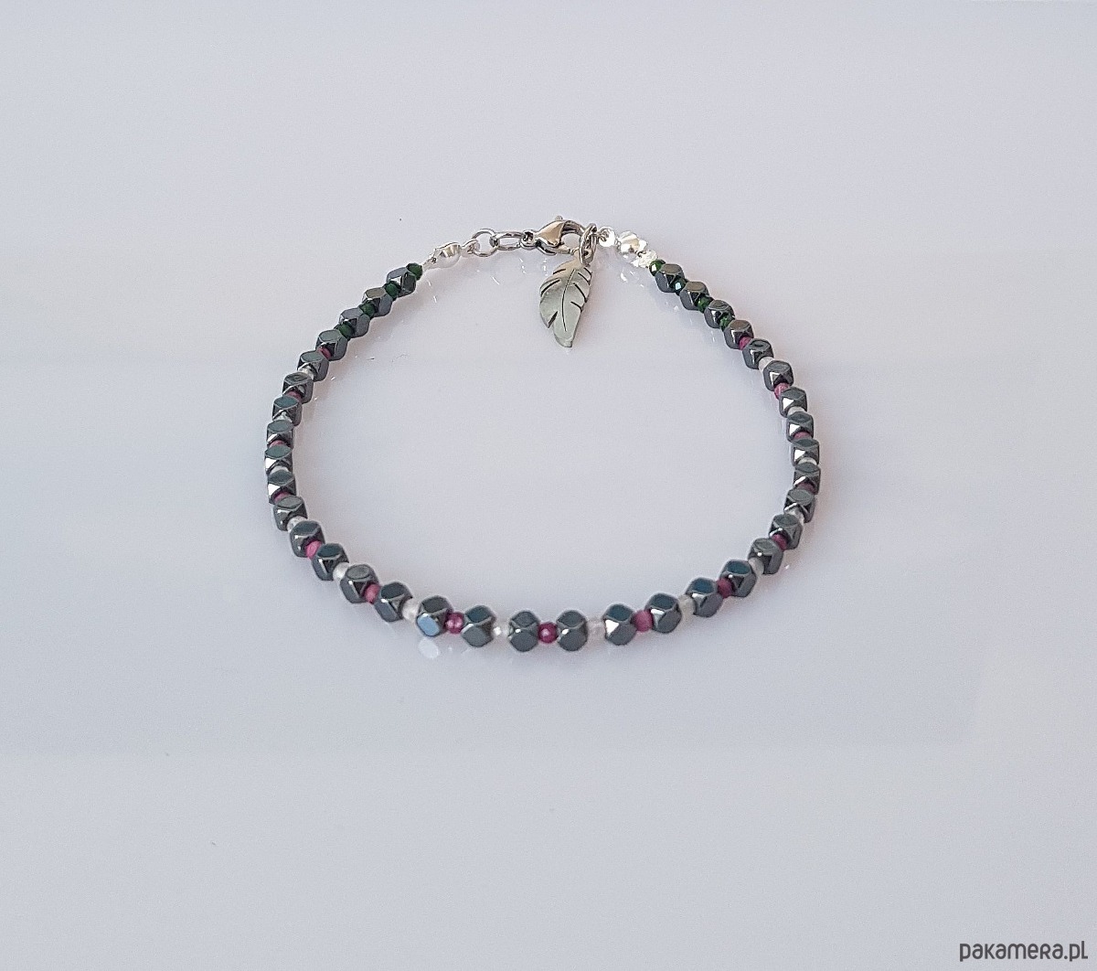 - Rodzaj kamienia: hematyt, kwarc różowy, rubin, szmaragd