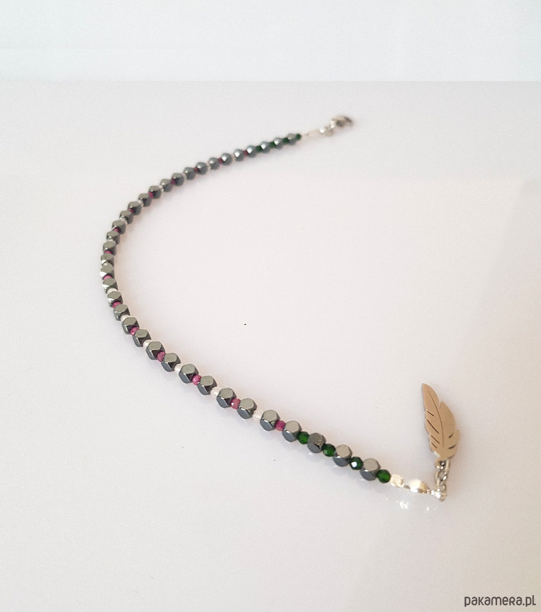 Delikatna, elegancka bransoletka z piórkiem.