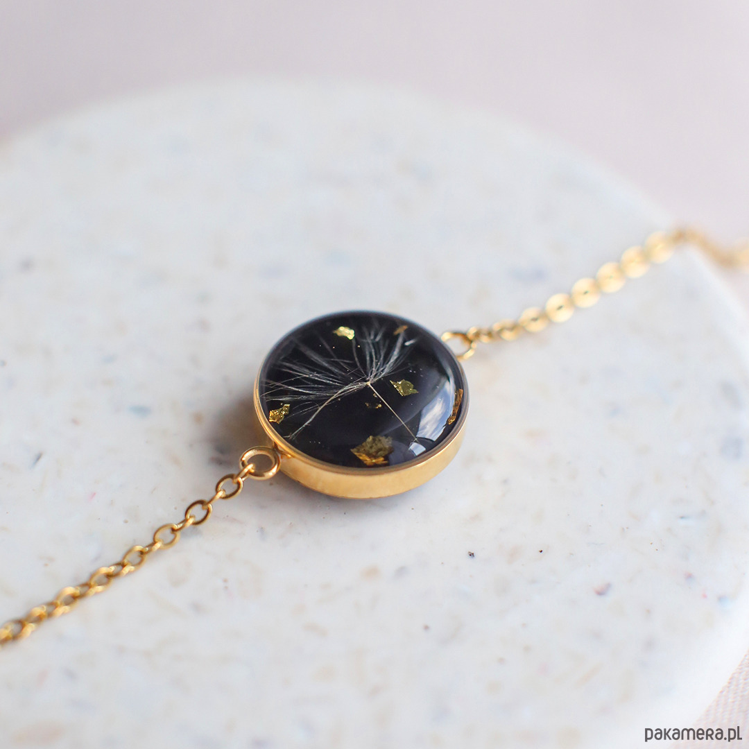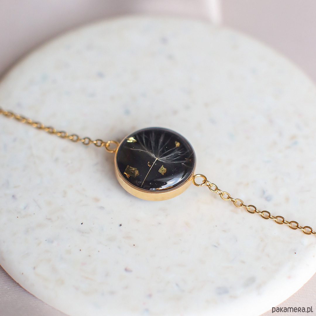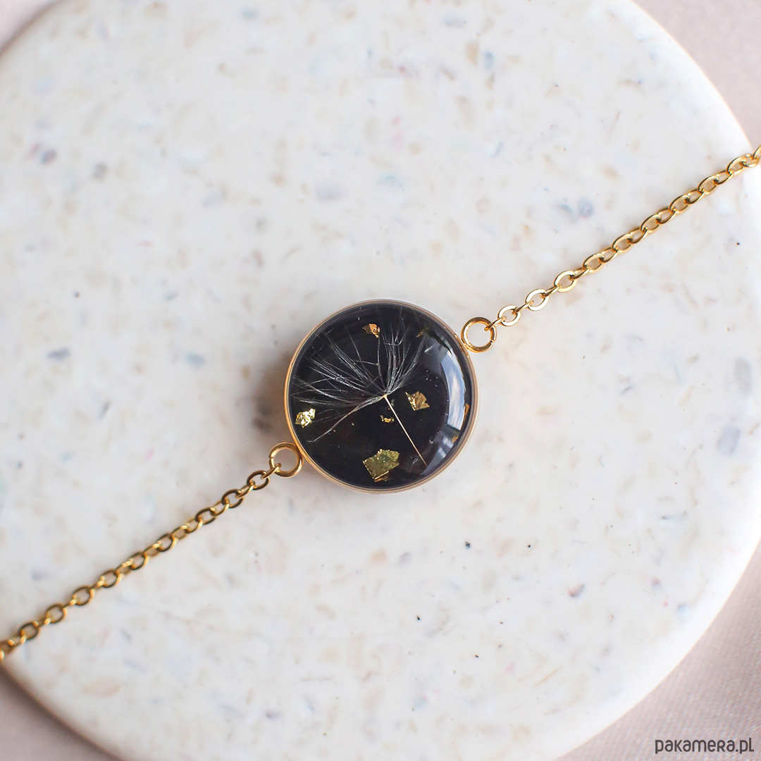 Bransoletka wykonana jest z żywicy epoksydowej z wykorzystaniem suszonych kwiatów. Metalowe elementy to stal nierdzewna szlachetna chirurgiczna