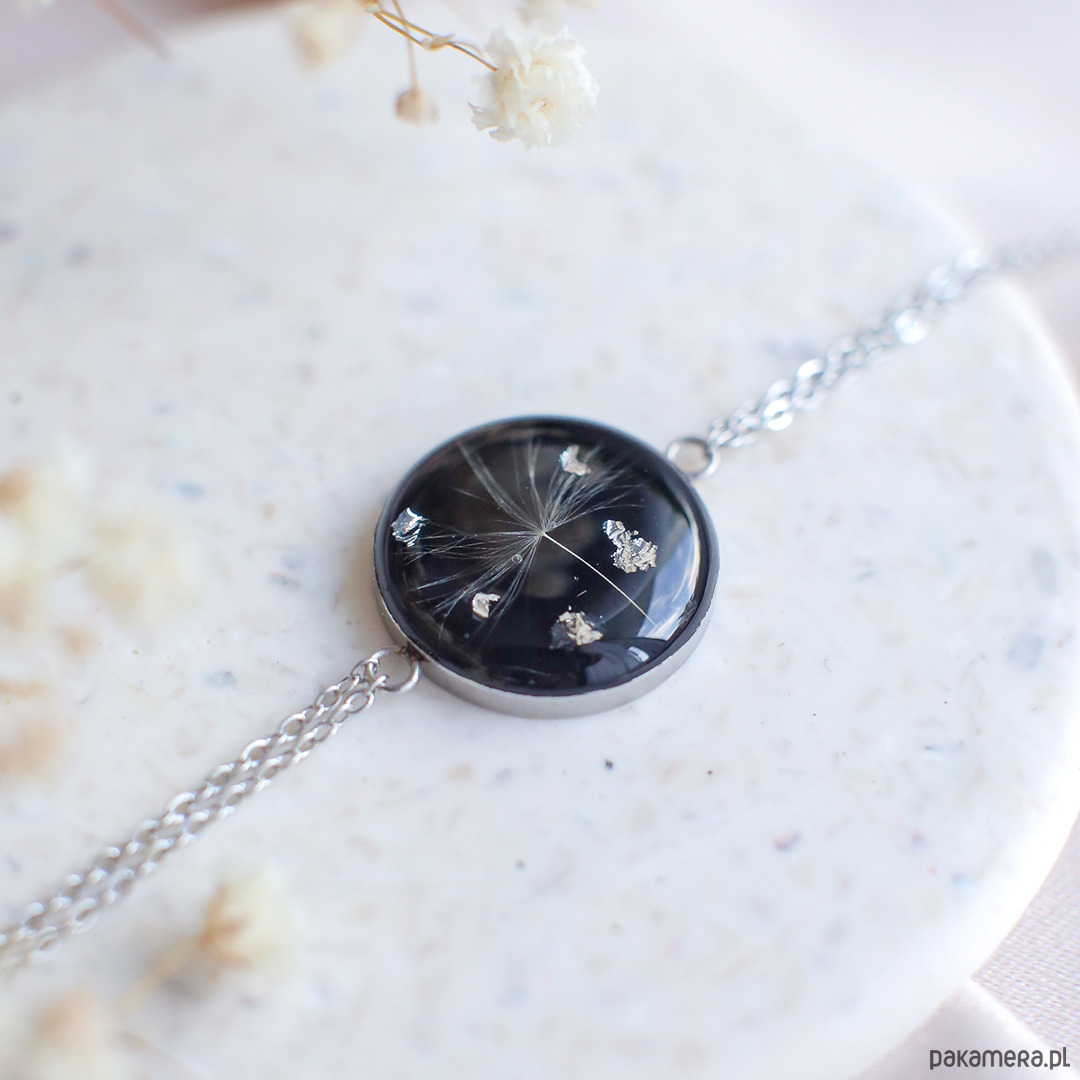 Bransoletka wykonana jest z żywicy epoksydowej z wykorzystaniem suszonych kwiatów. Metalowe elementy to stal nierdzewna szlachetna chirurgiczna