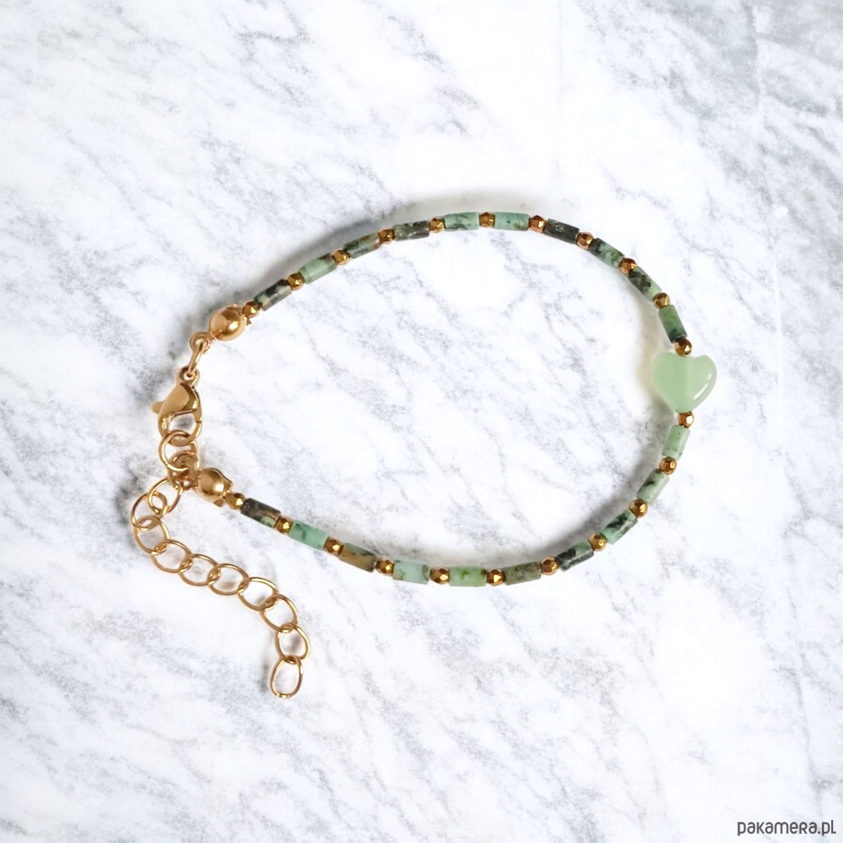 Bransoletka z serduszkiem : turkus afrykański, awenturyn zielony