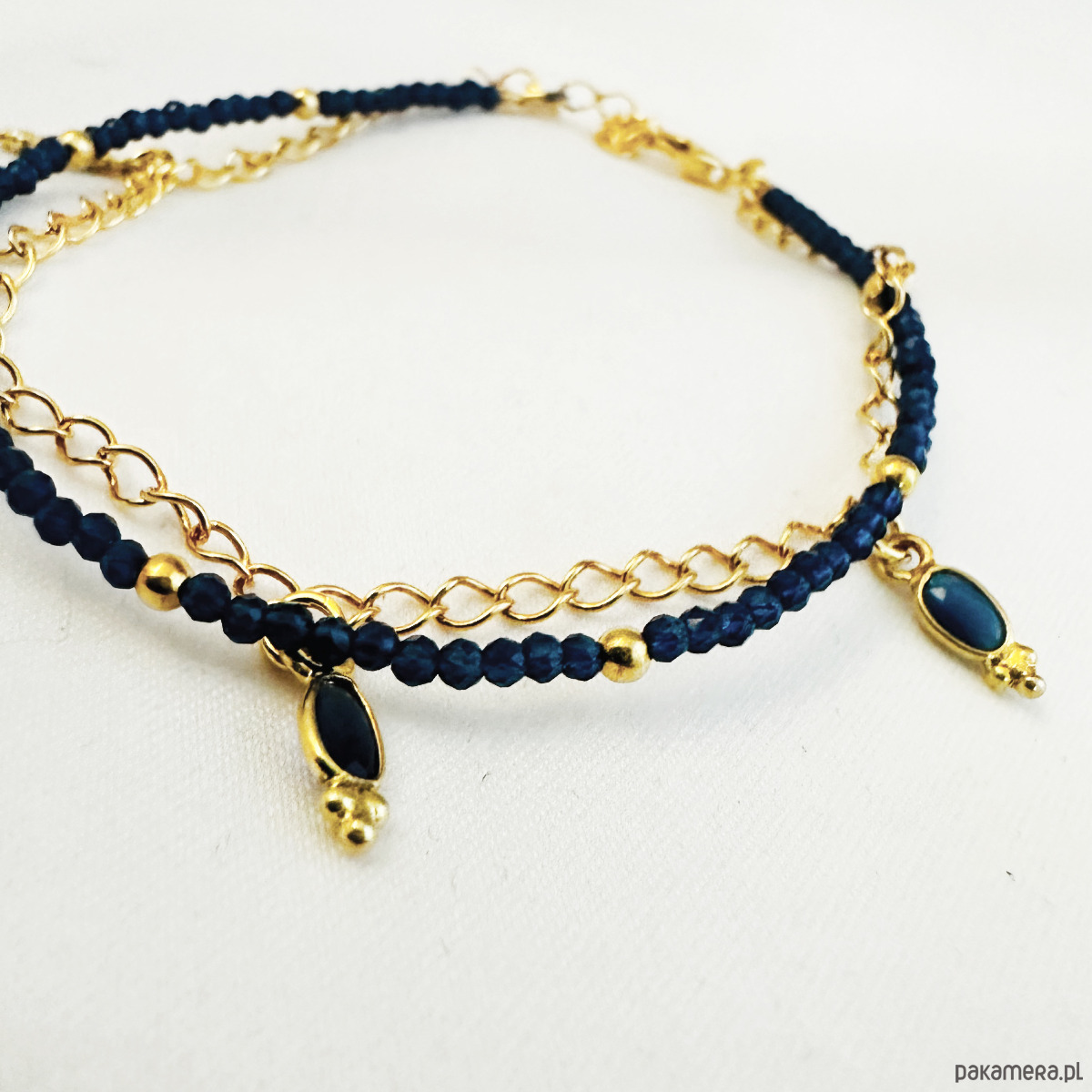 Delikatna bransoletka z szafirów w odcieniach granatu i złota., w podwójnym splocie,