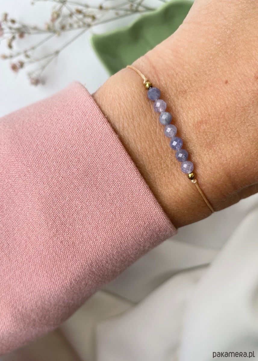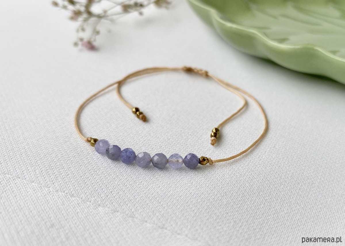 Bransoletka została ręcznie wykonana na beżowym jubilerskim sznureczku, który doskonale podkreśla naturalne piękno tanzanitu, tworząc delikatną, a zarazem elegancką kompozycję. Beżowy sznurek to nie tylko estetyczny wybór, ale także wytrzymały materiał, który zapewnia długotrwałą trwałość biżuterii. Regulowane zapięcie pozwala dopasować bransoletkę do każdego nadgarstka, co sprawia, że jest ona praktyczna i wygodna w noszeniu.