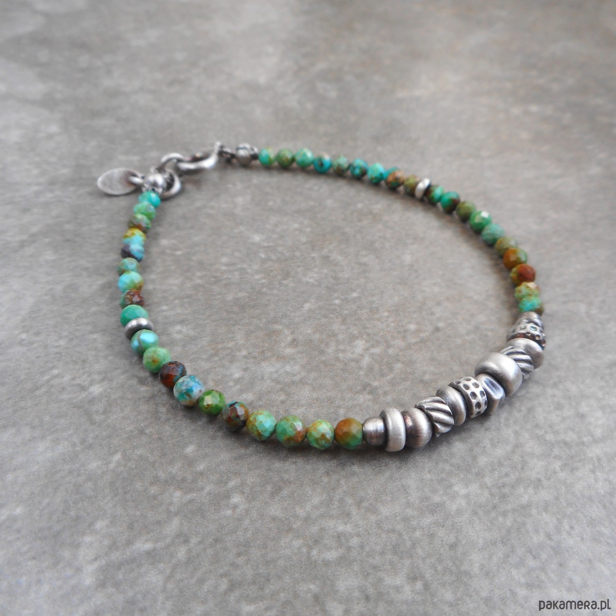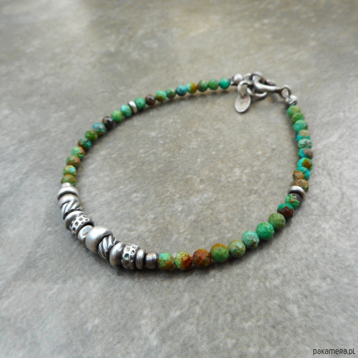 Subtelna, delikatna bransoletka z kamieni naturalnych i szlachetnego srebra, mineralna nitka ozdobiona przekładkami ze srebra, doskonała do noszenia pojedynczo jako delikatny akcent oraz w komplecie z innymi cienkimi bransoletkami.