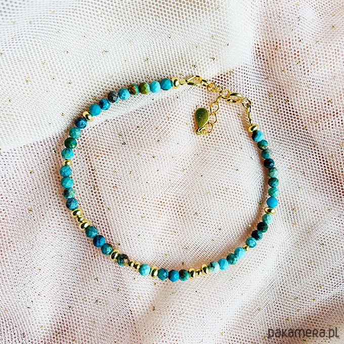 Bransoletka z naturalnego turkusu w wielu odcieniach błękitu, kolorów morza i nieba.