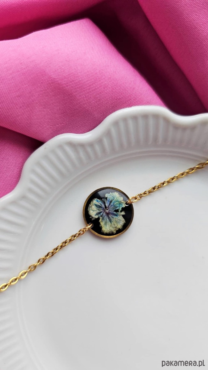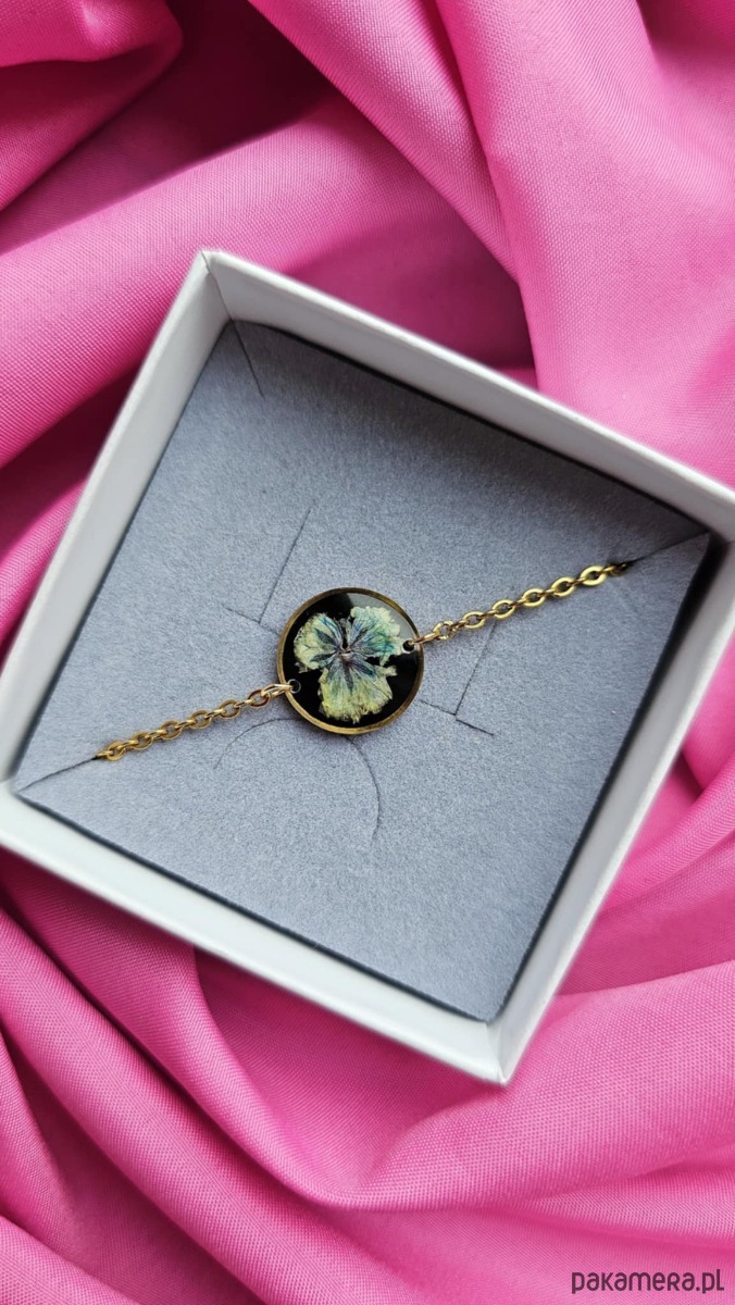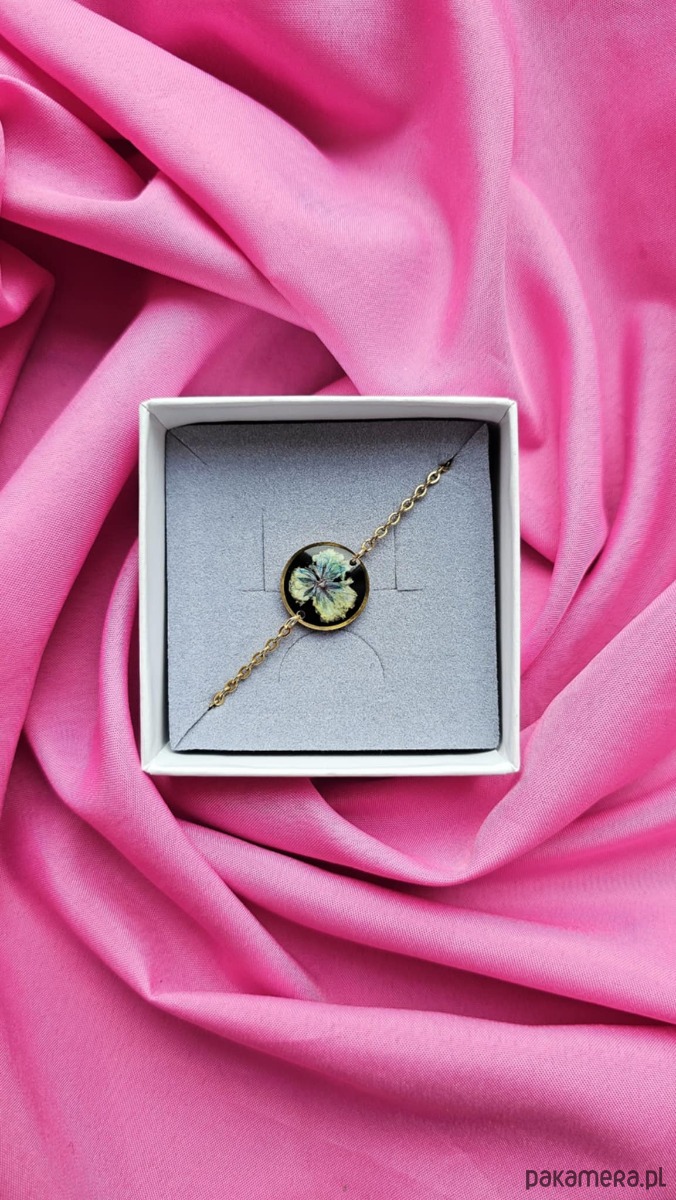 Bransoletka z kwiatami suszonej gipsówki to unikatowa, ręcznie wykonana biżuteria z serii Harmonia.