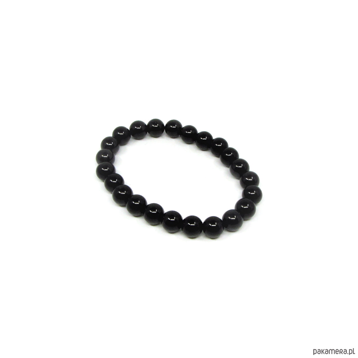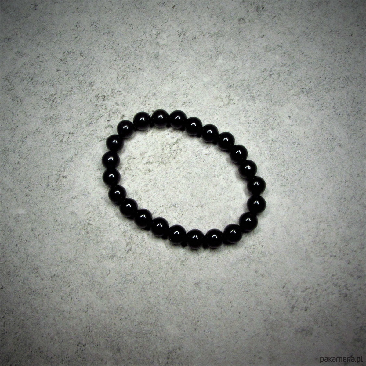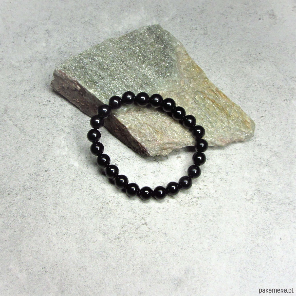 Bransoletka wykonana z wysokiej jakości kamieni turmalinów 8mm nawleczonych na silikonową gumkę. Kamienie o kształcie gładkiej kulki w kolorze głębokiej czerni. Bransoletka pasuje na nadgarstek o obwodzie 17-18 cm.
