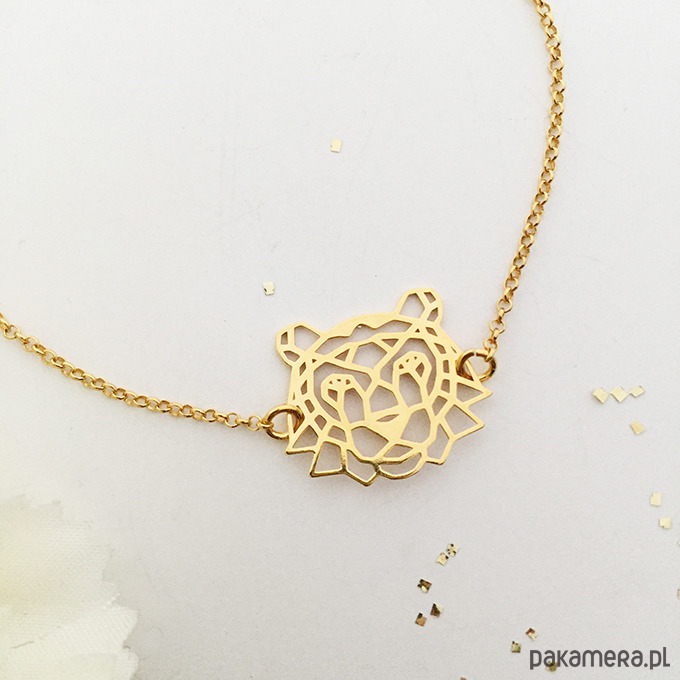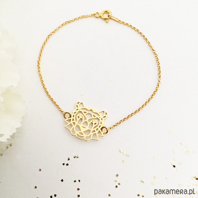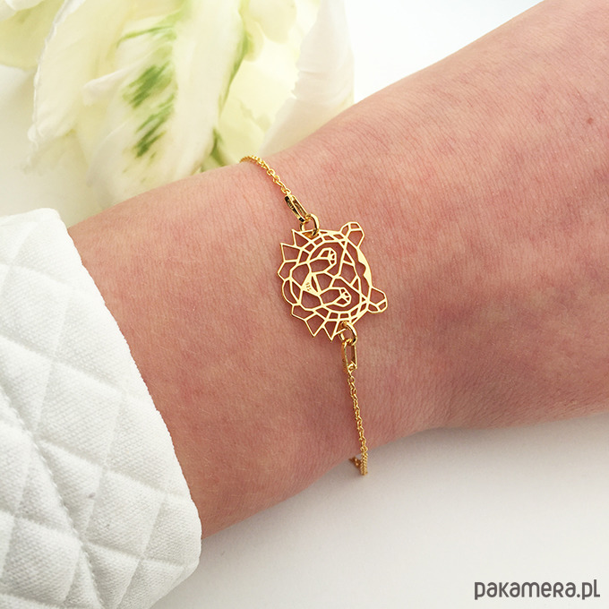 Bransoletka z zawieszką w kształcie głowy tygrysa. Z obu stron zawieszka jest taka sama, Wykonana ze srebra próby 925 lub złocona24 k złotem.