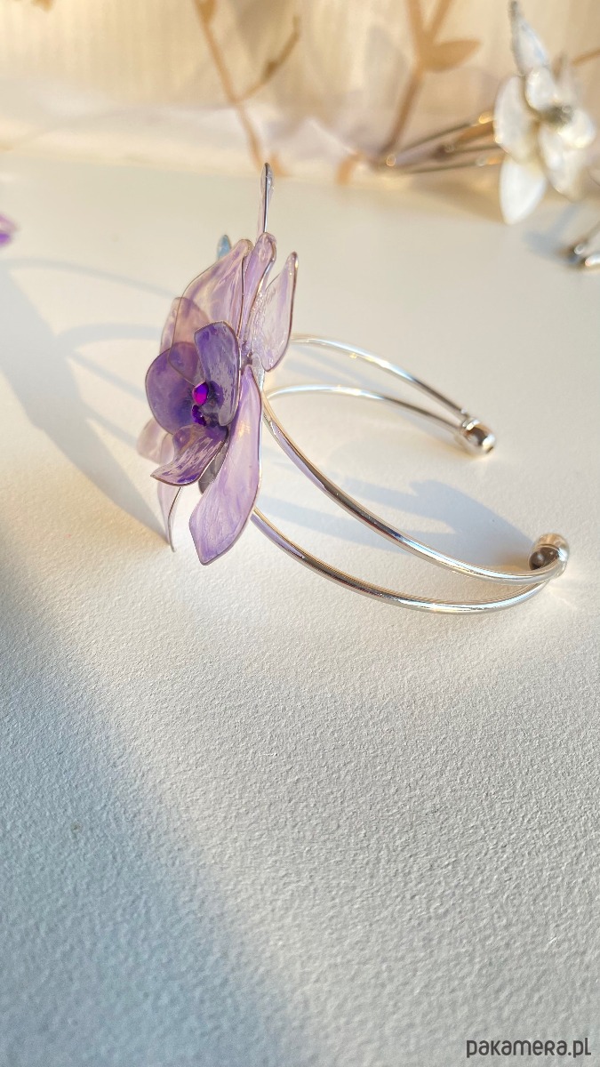 Zanurz się w pięknie natury dzięki tej wyjątkowej, ręcznie wykonanej bransoletce. W jej przezroczystej głębi ukryta jest delikatna kompozycja kwiatowa, uchwycająca ulotną chwilę wiosny. Każdy płatek i źdźbło trawy zostały starannie zebrane, wysuszone i zatopione w żywicy epoksydowej, aby zachować swoją subtelną kruchość i być chronionymi przed upływem czasu.
