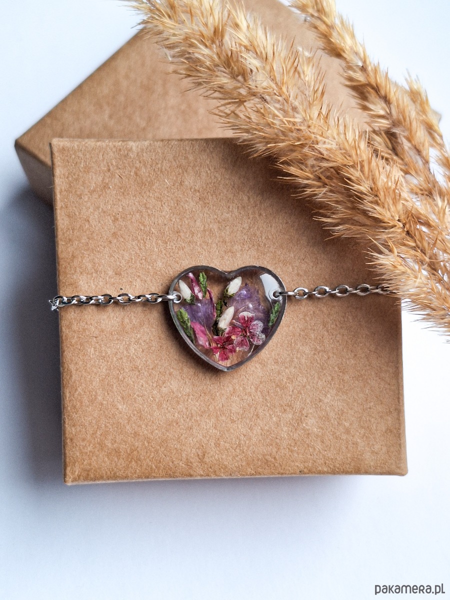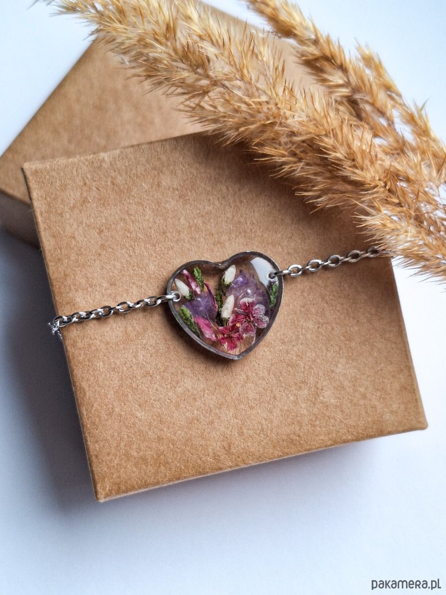 Bransoletka z żywicy serduszko z kwiatami