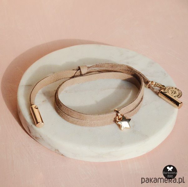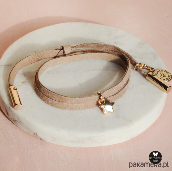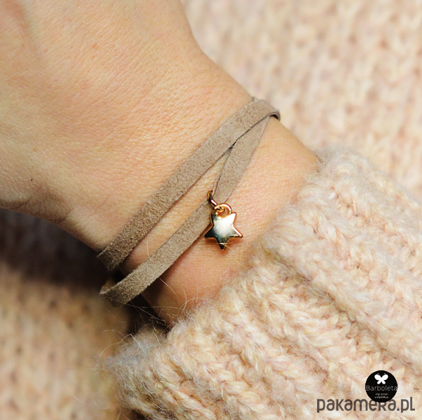 Bransoletka z naturalnej skóry wysokiej jakości zamszowej.
