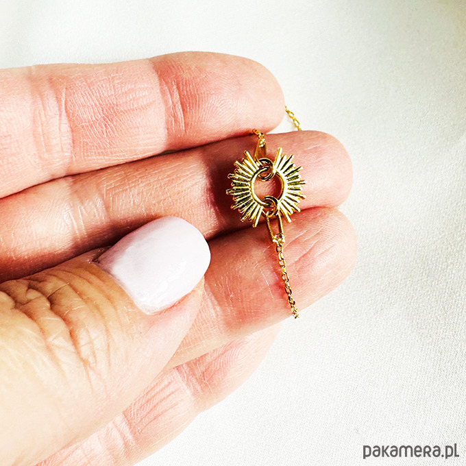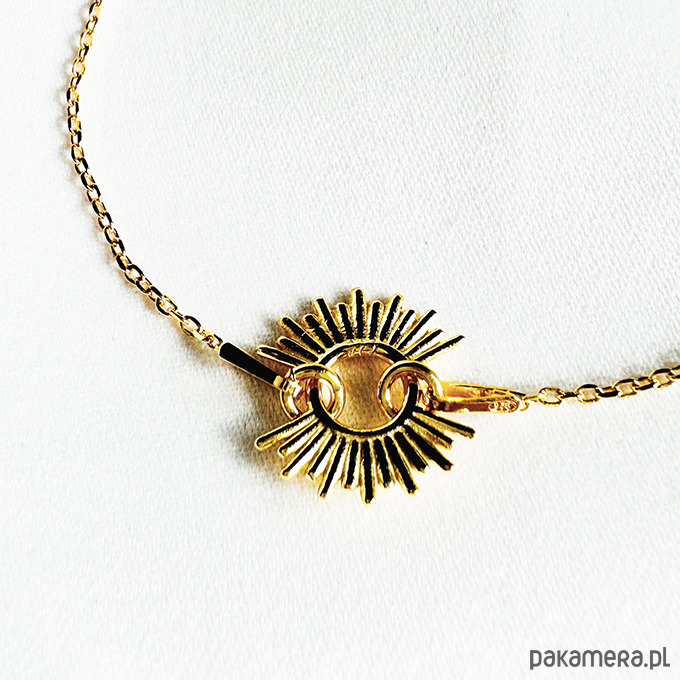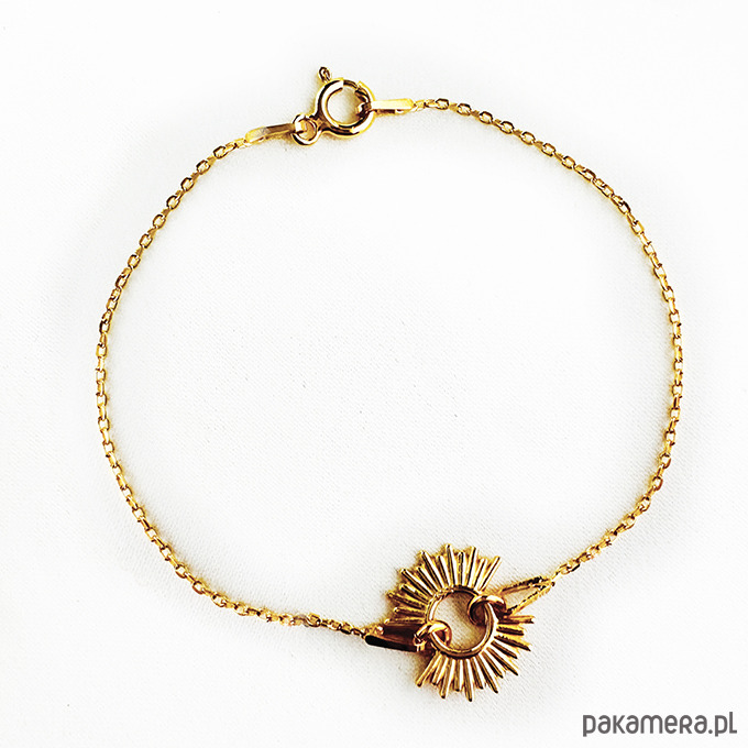 Unikatowa, delikatna, efektowna bransoletka z zawieszką w kształcie słońca, jest nowoczesna i przykuwająca uwagę. Inspirowana aztecką biżuterią.