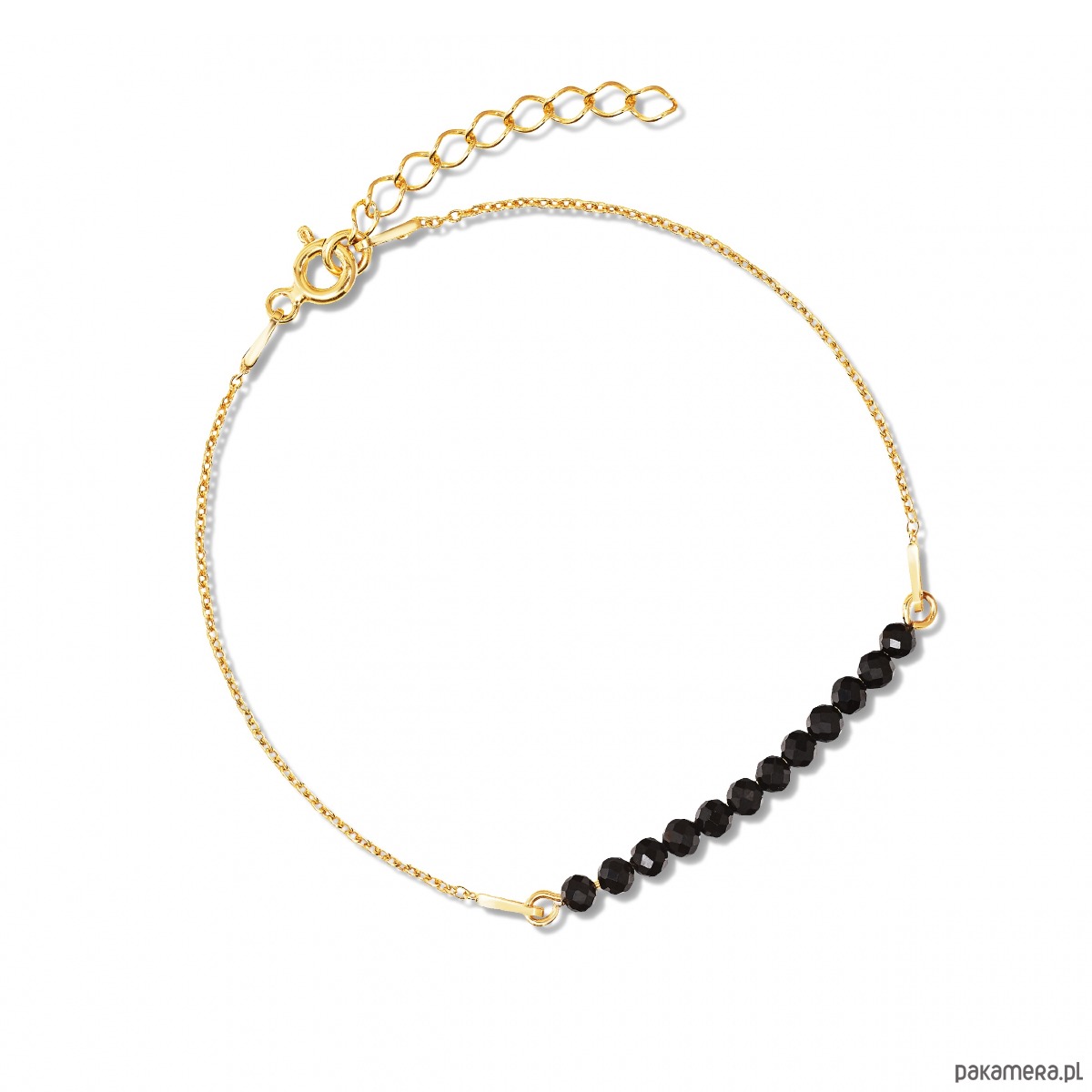 Bransoletka z czarnym spinelem. Elementy wykonane ze srebra próby 925, złoconego 24-karatowym złotem.