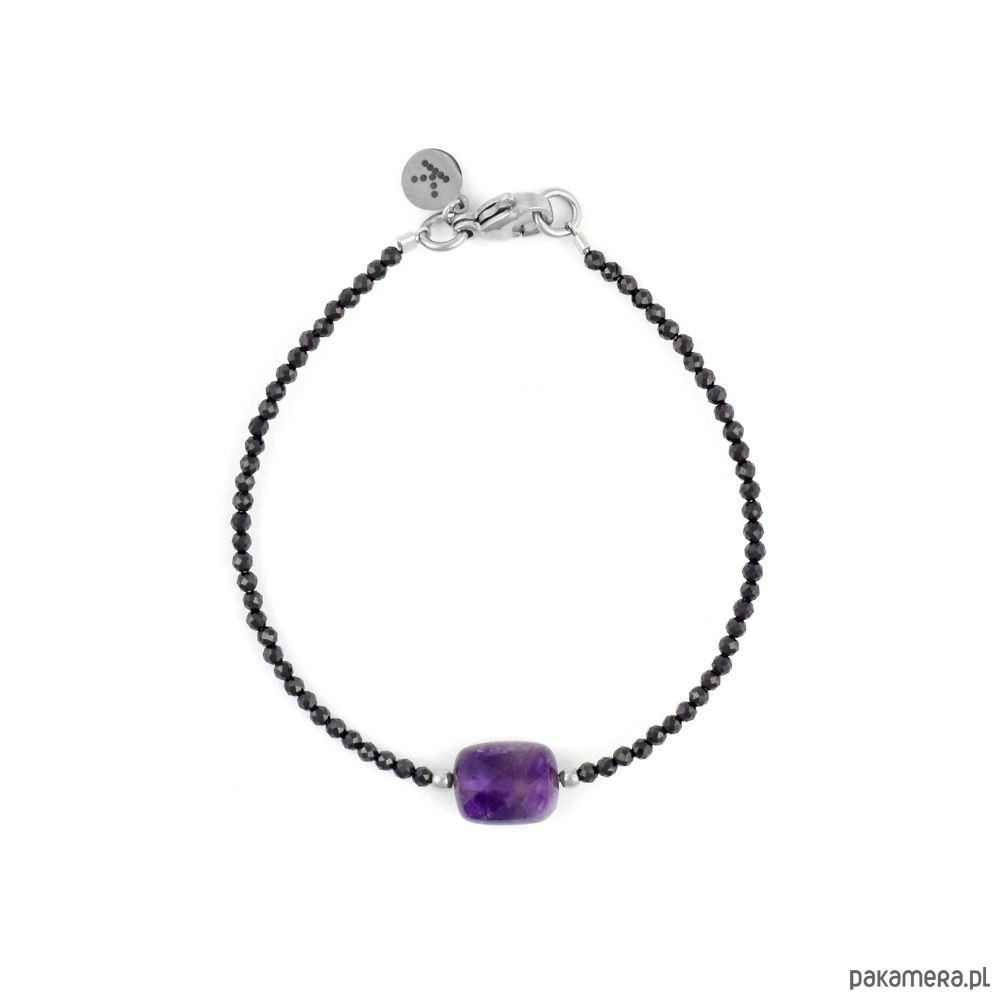Bransoletka wykonana ze Spineli, Hematytu oraz Pastylki Ametystu. Dzięki subtelnemu designowi, ta bransoletka pasuje zarówno na co dzień, jak i na wyjątkowe okazje.