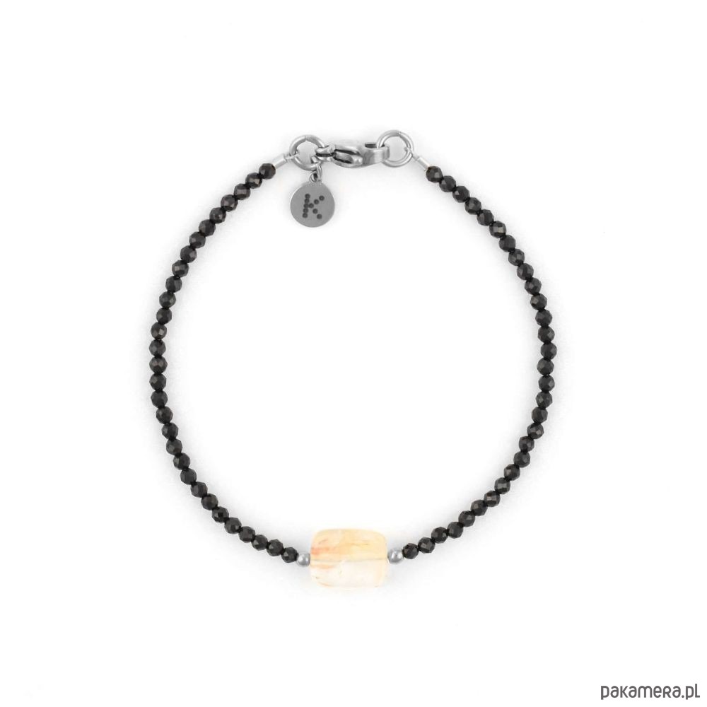 Bransoletka wykonana ze Spineli, Hematytu oraz Pastylki Cytrynu. Dzięki subtelnemu designowi, ta bransoletka pasuje zarówno na co dzień, jak i na wyjątkowe okazje.