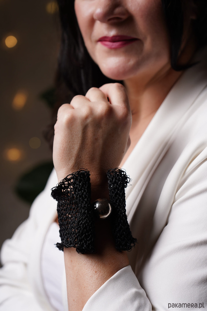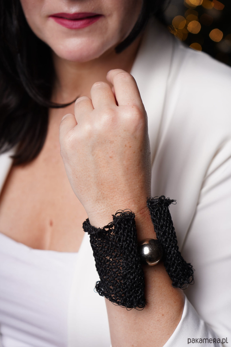 Bransoletka ze sznurka lnianego na drutach