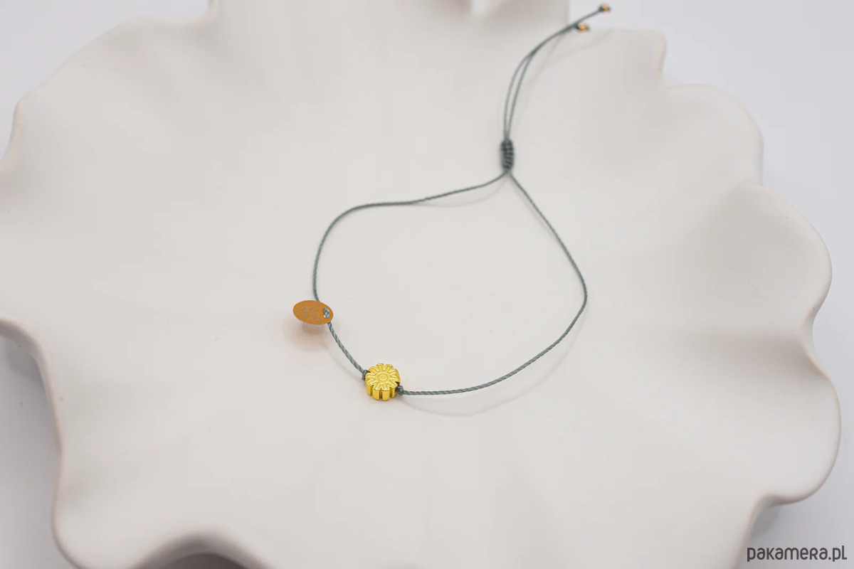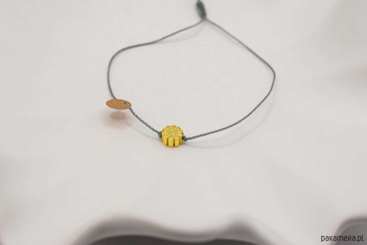Bransoletka ze złotym Kwiatem stworzyliśmy ręcznie przy pomocy kształtu z Hematytu umieszczonego na specjalnym nylonowym sznureczku sprowadzanym ze Stanów Zjednoczonych. Dzięki temu nie musisz jej w ogóle zdejmować, gdyż są wodoodporne oraz super wytrzymałe!