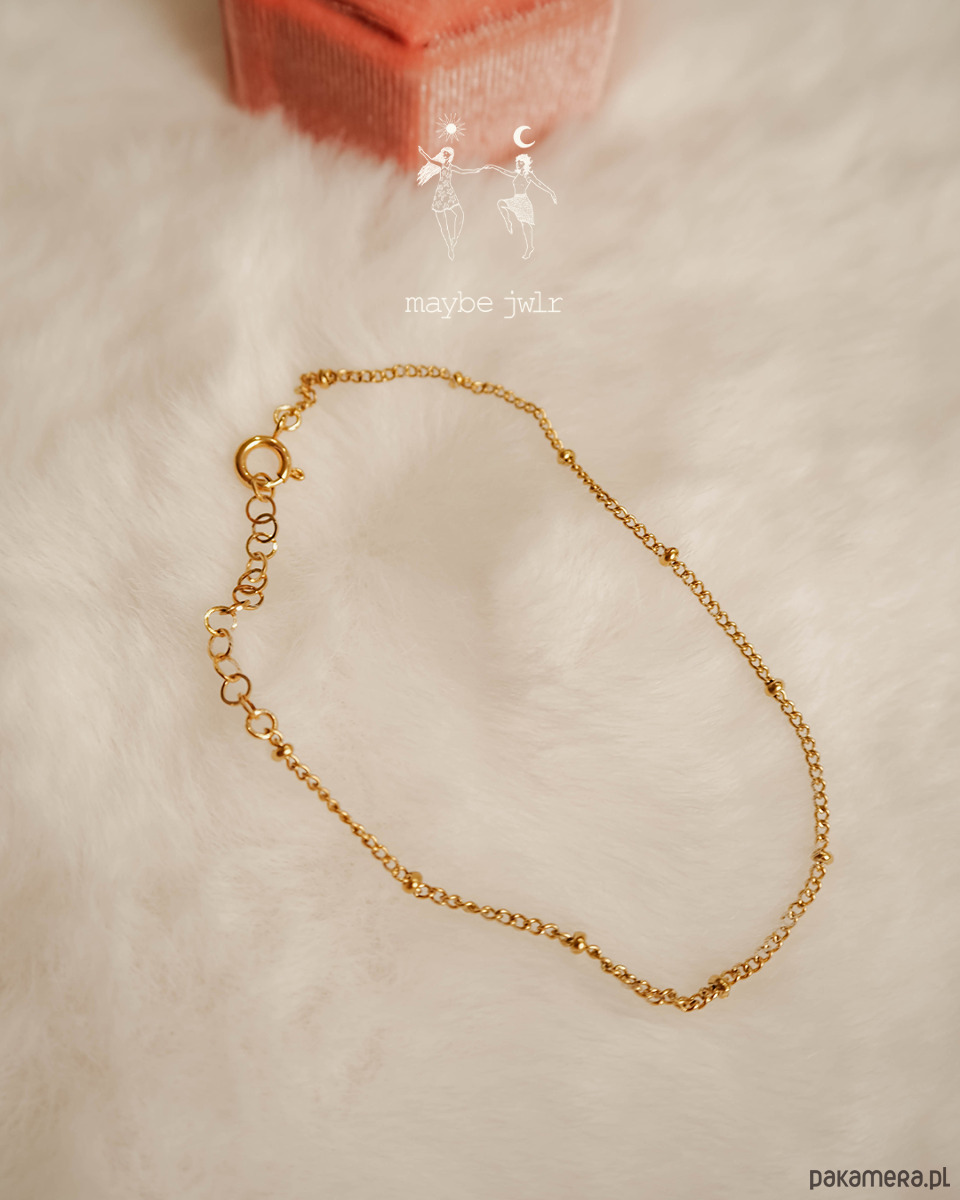 Ta bransoletka to mała dawka energii, którą możesz nosić cały rok. Delikatny łańcuszek z drobnymi kuleczkami pięknie połyskuje przy każdym ruchu, a całość wygląda zaskakująco, świeżo i bardzo kobieco.
