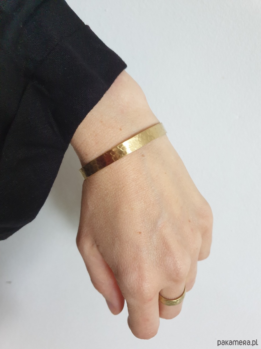 ROZMIAR: Bransoletka uformowana na obwód 5,5 /6 cm średnicy, ale można rozgiąć lub przygiąć do pasującego obwodu dłoni. Szerokość 0,8 cm