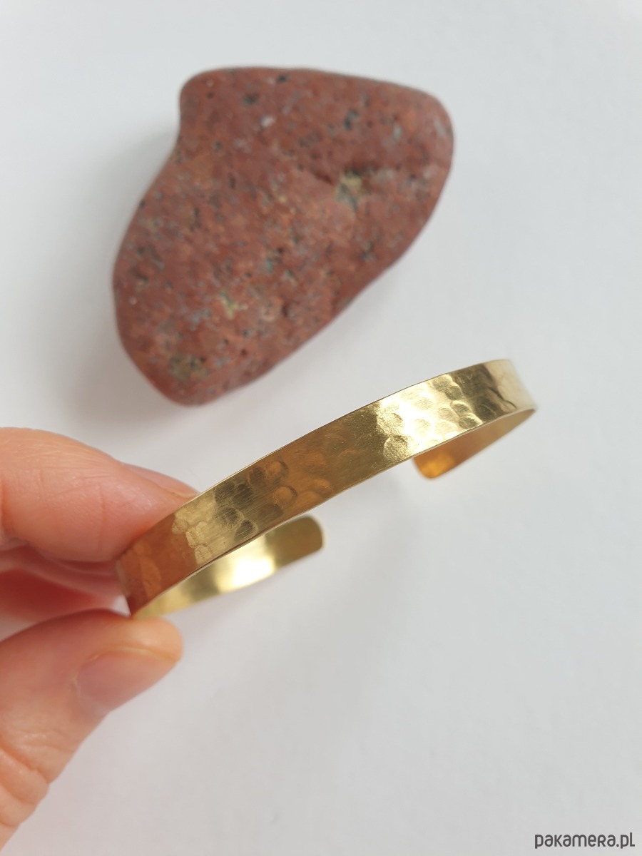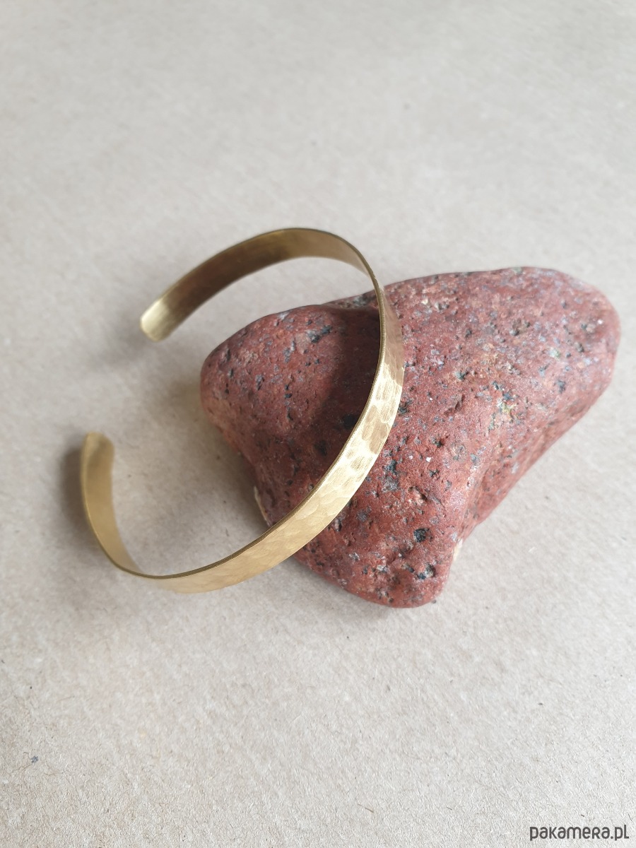 Bransoleta z blachy z surowego mosiądzu z kolekcji ZEN. Bransoletka w minimalistycznym, rustykalnym stylu, ręcznie młotkowana i formowana, lekka, bardzo wygodna w noszeniu.