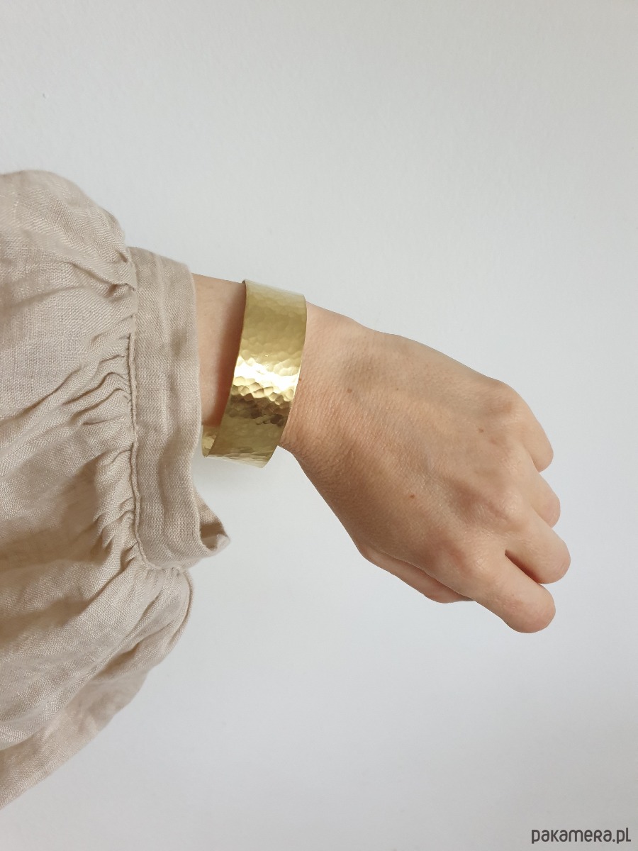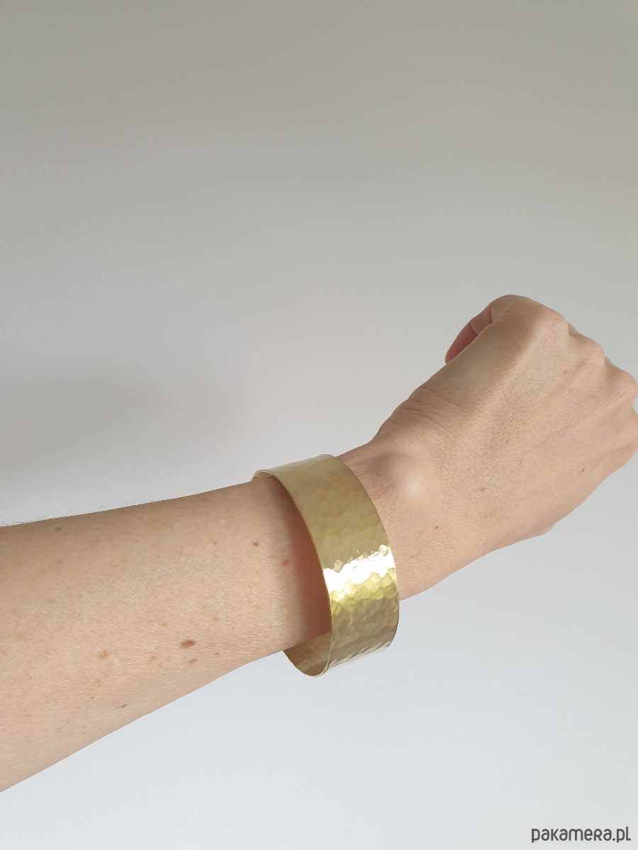 ROZMIAR: Bransoletka uformowana na obwód 5,5 cm średnicy, ale można rozgiąć lub przygiąć do pasującego obwodu dłoni. Szerokość 2,5 cm