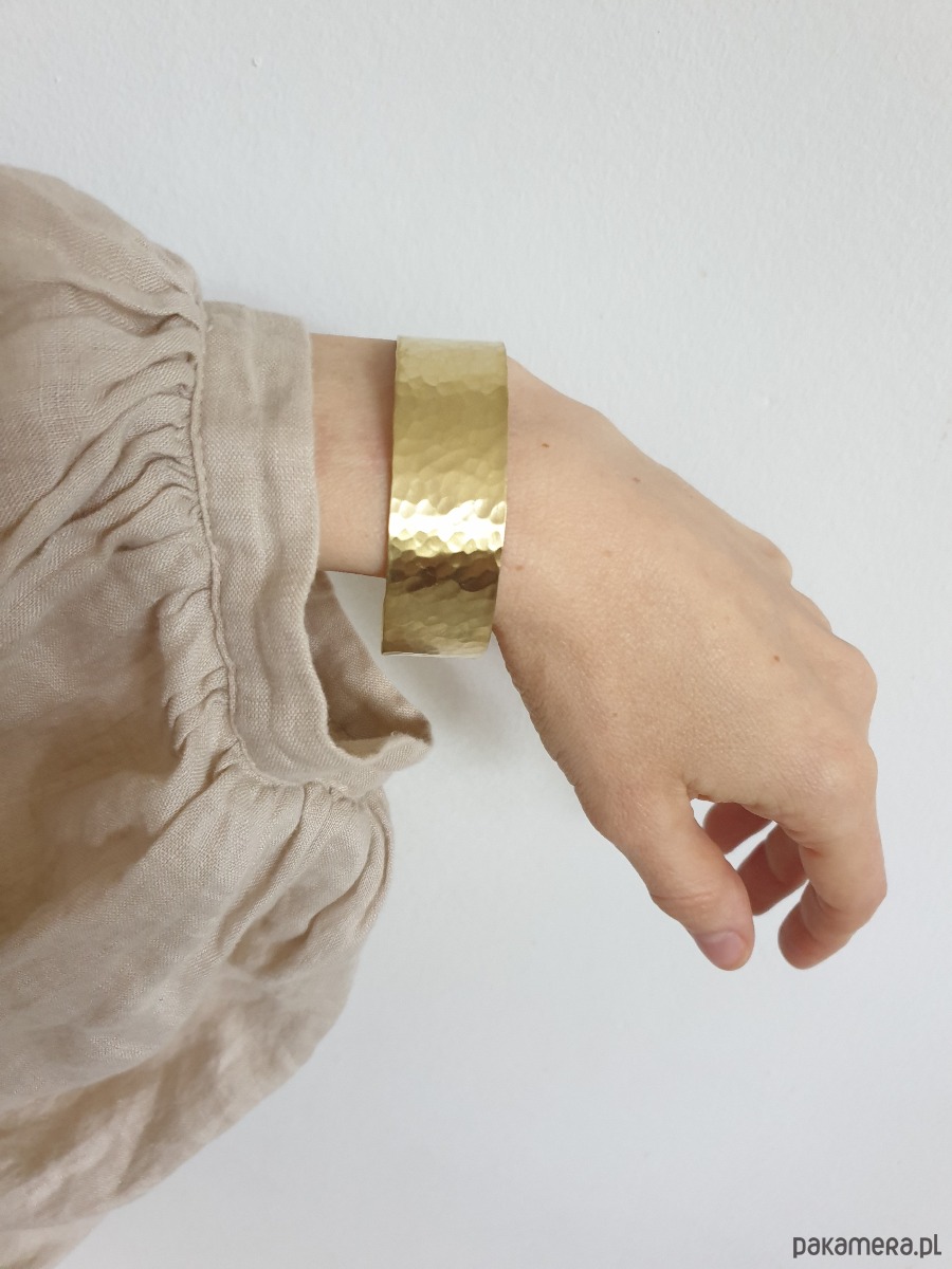 Bransoleta z blachy z surowego mosiądzu z kolekcji ZEN. Bransoletka w minimalistycznym, rustykalnym stylu, ręcznie młotkowana i formowana, lekka, bardzo wygodna w noszeniu.