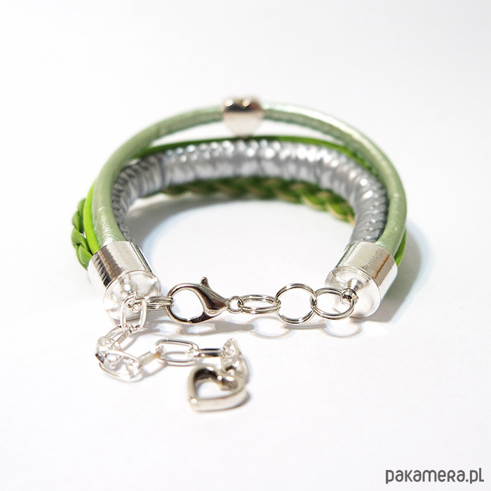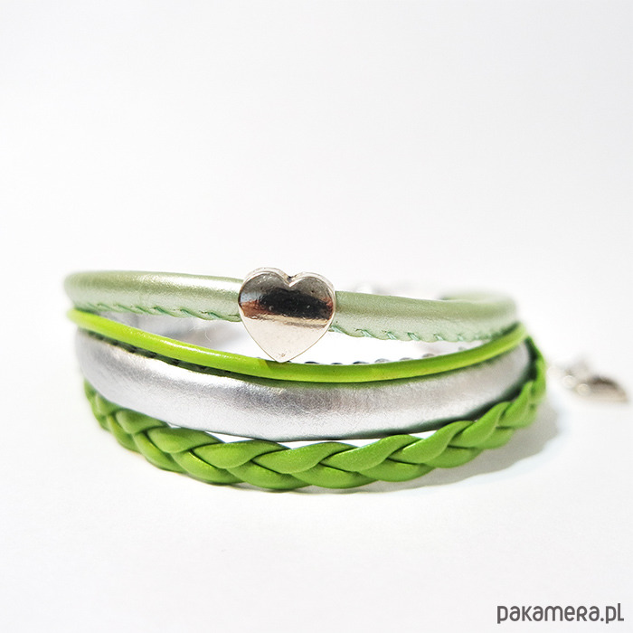 Bransoletka - Zielone serce - rzemienie