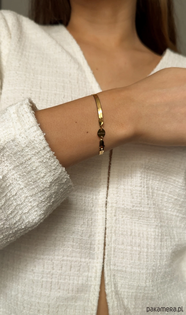 Bransoletka została wykonana ręcznie ze srebra próby 925, pozłocona 24 karatowym złotem.