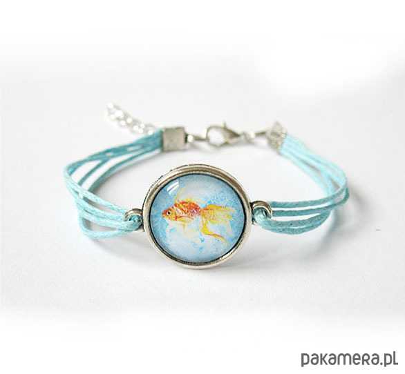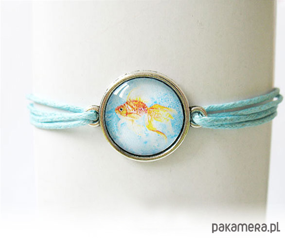 Bransoletka - Złota rybka - niebieska, sznurki