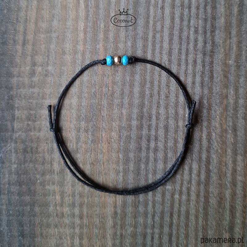 Bransoletka złoto i turkus na sznurku