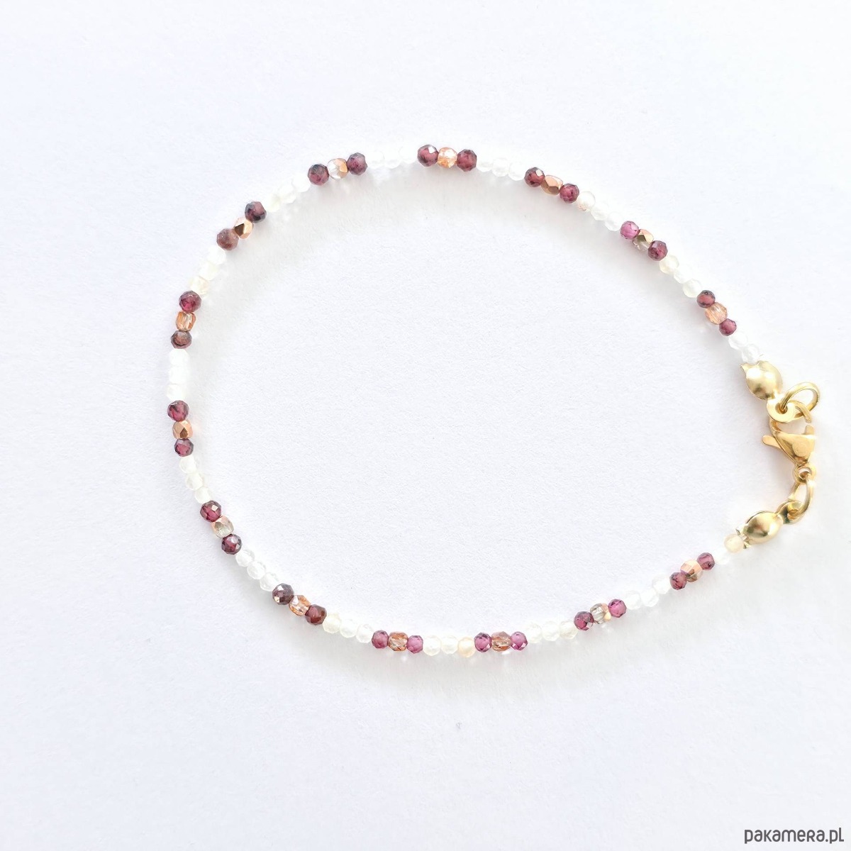 • Pielęgnacja: Unikaj kontaktu z wodą, perfumami i chemikaliami. Czyść suchą, miękką szmatką. Przechowuj w suchym miejscu. Żyłka jest wrażliwa na wysokie temperatury – unikaj narażania bransoletki na słońce czy nagrzane samochody. Może to spowodować odkształcenie lub osłabienie żyłki.
