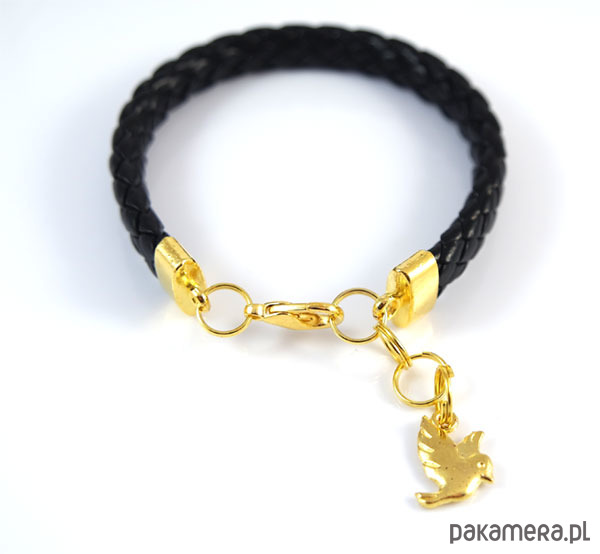 Bransoletka zrobiona jest z rzemienia ze skóry ekologicznej.