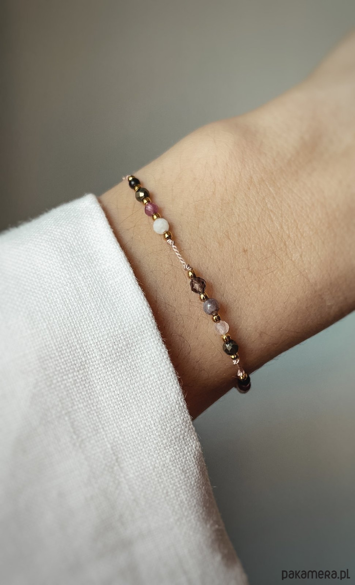 Bransoletka ta, nie dość że szalenie modna w tym sezonie, ma również dodatkowe, głębsze znaczenie. Każdy kamień ma swoje unikatowe właściwości, które oddziałują na osobę je noszącą. Będzie również genialnym pomysłem na prezent na przeróżne okazje – urodziny, walentynki, święta i wiele wiele innych. Bransoletka ma regulowaną długość. Z tyłu znajduje się pozłacana kuleczka, które pozwala na dopasowanie długości idealnie do ręki. Całość wykonywana jest własnoręcznie z dbałością o każdy detal.
