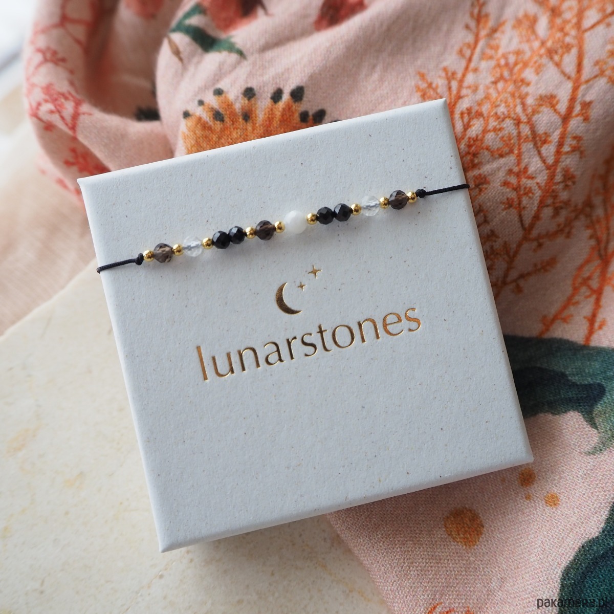 - Rodzaj kamienia: turmalin, kryształ górski, kamień księżycowy