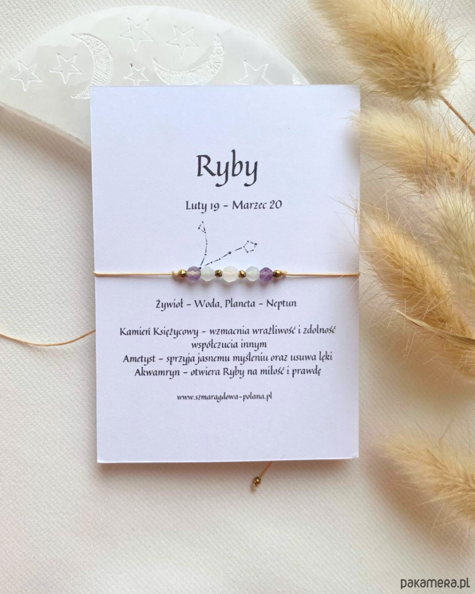 Bransoletka zodiakalna Ryby to subtelna, ręcznie wykonana biżuteria z naturalnych kamieni, stworzona z myślą o osobach urodzonych pod znakiem Ryb. Ryby symbolizują intuicję, wrażliwość, empatię i głębokie połączenie z emocjami. Ta minimalistyczna bransoletka powstała jako delikatny talizman, który wspiera równowagę emocjonalną, rozwój duchowy i kontakt z własną intuicją.